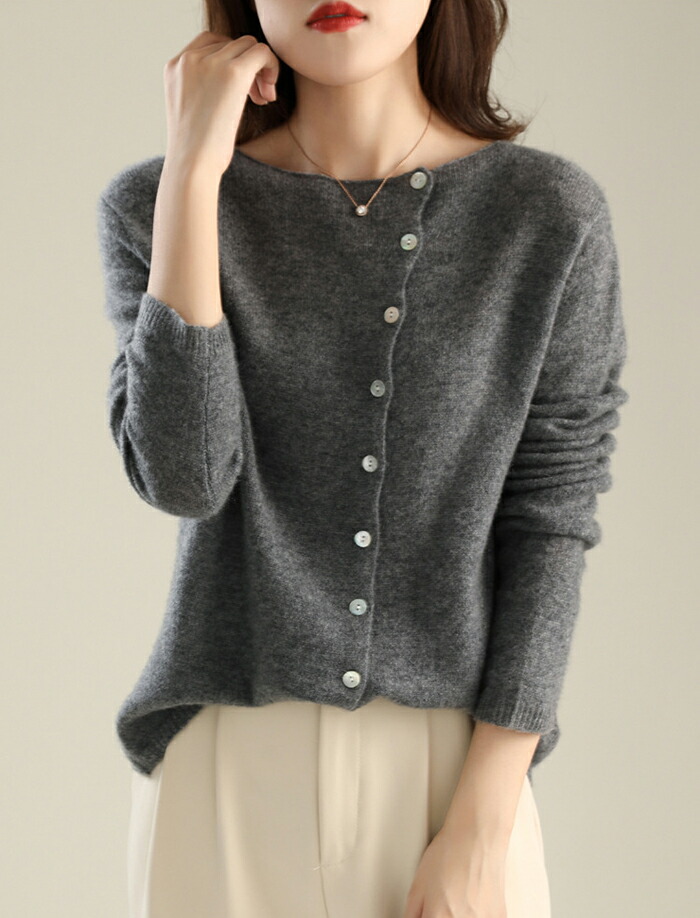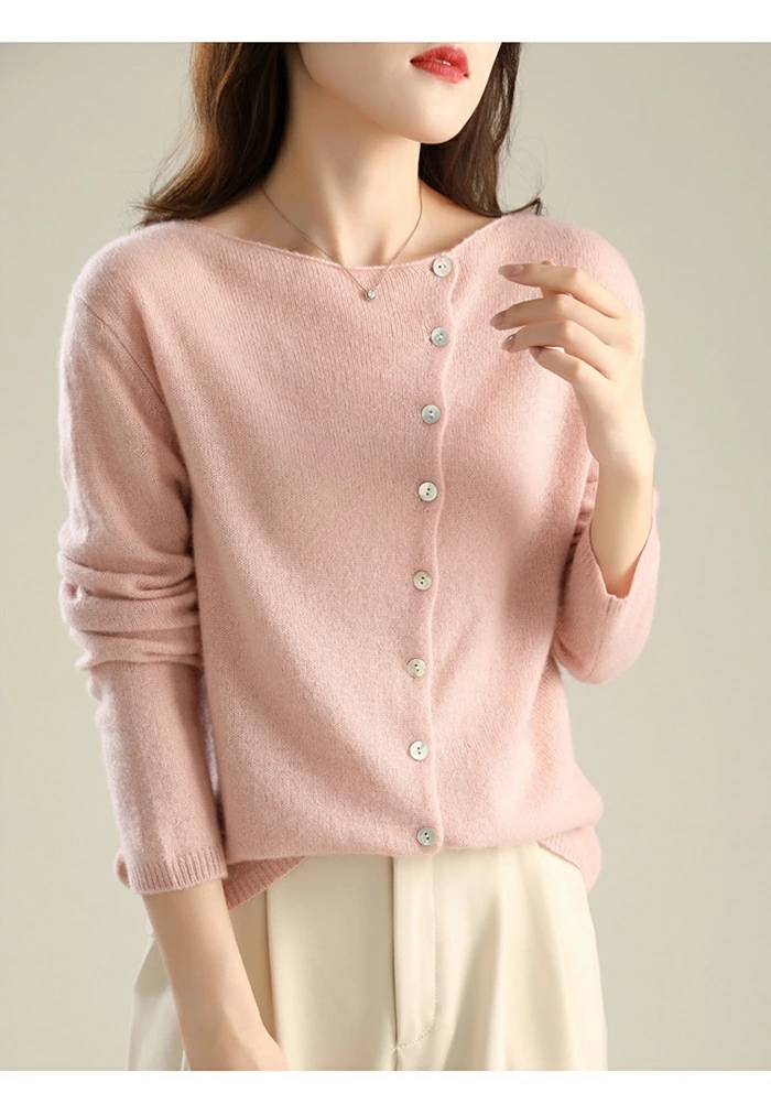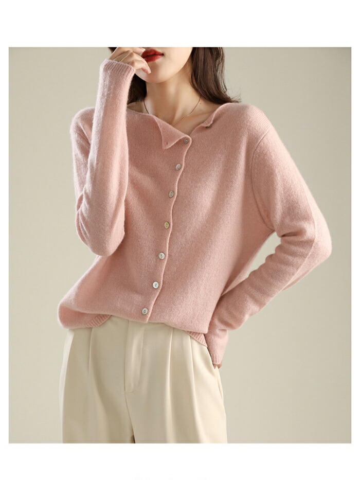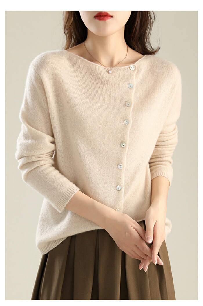 カットソー レディース 秋 長袖 ニットブラウス セーター 秋冬 ニットカットソー 前開き ニット トップス 通勤 OL クルーネック オフィス 柔らか 春秋 フェミニン カジュアル 女性らしい 大人