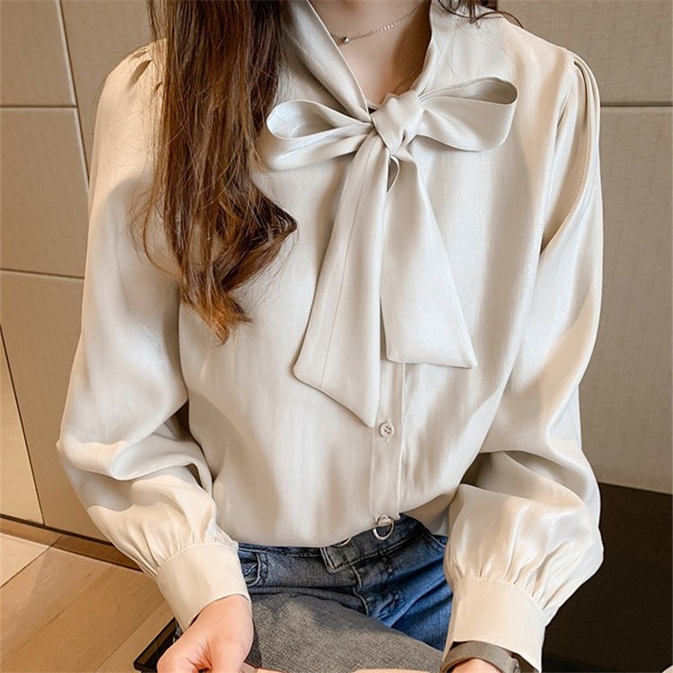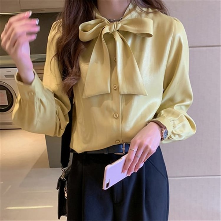シアースリーブ ドッキングシャツ ボウタイシャツブラウス