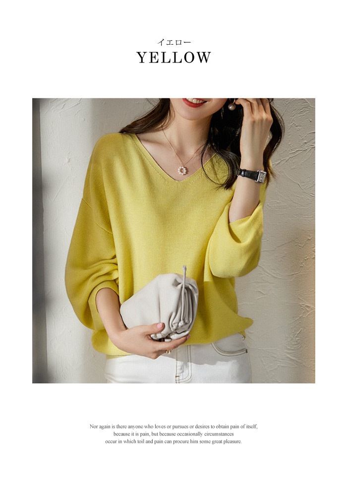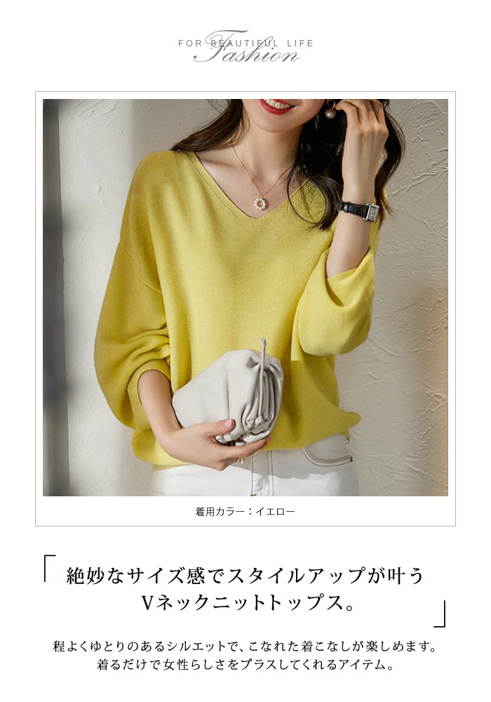 ニットトップス 長袖 ゆったり レディース 春冬 白 Vネック サマーニット セーター トップス ホワイト イエロー グリーン 無地 20代 30代 母