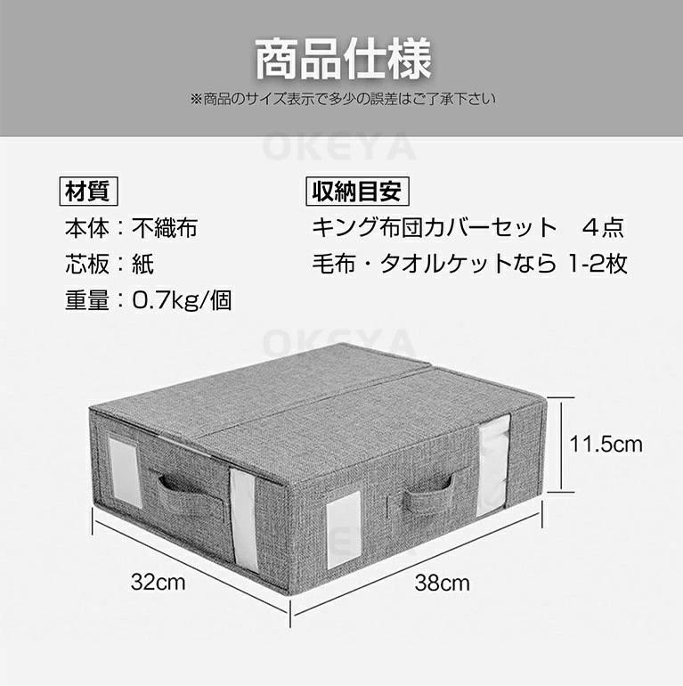 寝具収納 収納ケース 毛布保存袋 収納ボックス 布製 折りたたみ 毛布収納 シーツ収納 衣類収納 クローゼット収納 毛布 布団カバーセット ベッド下収納 布団 すき間収納 スリム収納 押入れ収納 収納