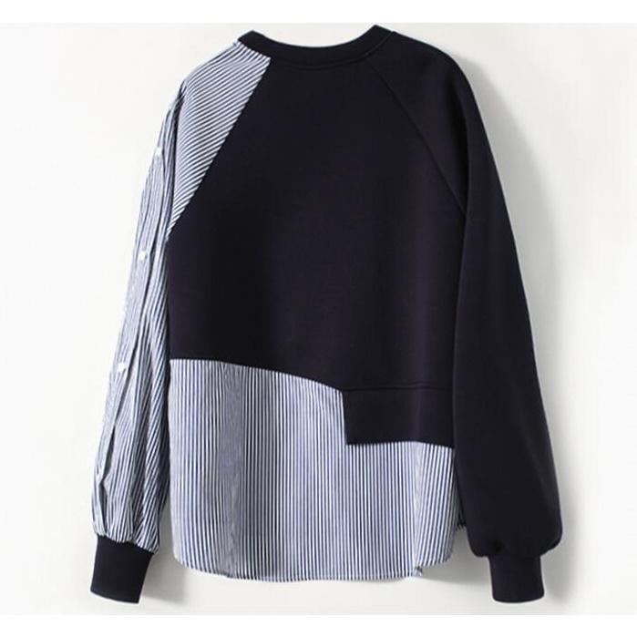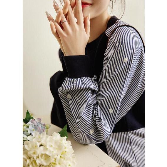 tシャツ切り替え レディース 秋服 長袖 カットソー トレーナー切り替え 丸首 ドッキング プルオーバー tシャツ トレーナー 無地 ストライプ 異素材
