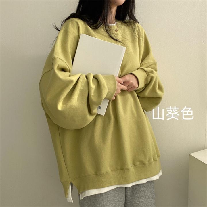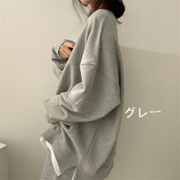 トレーナー レディース 春秋 レイヤードトレーナー パーカー フードなし 切り替え プルオーバー トップス 長袖 アウター インナー Tシャツ カットソー