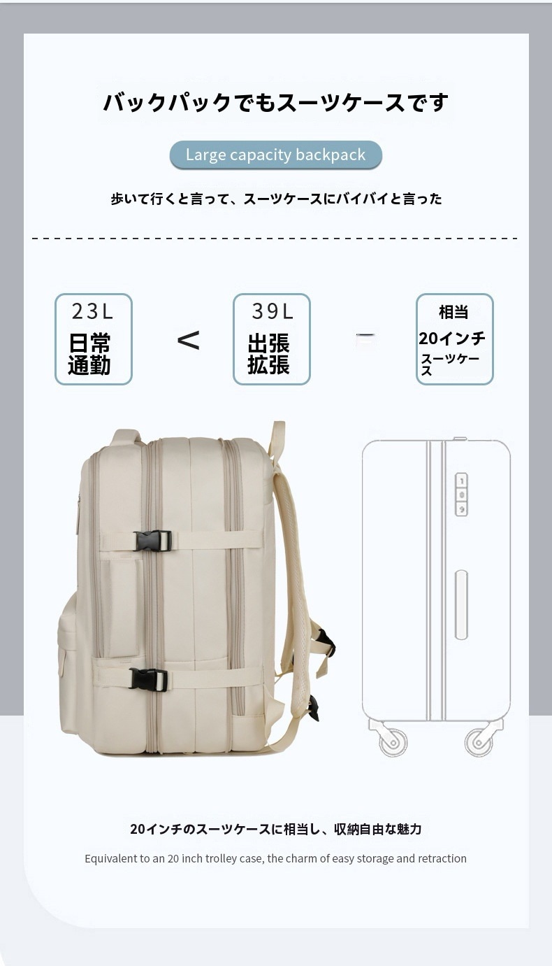 リュック 大容量 リュックサック バックパック 拡張収納 23Lから39L 通勤 通学 防水 拡張機能付き 仕分け 軽量 PC収納 USBポート 防災リュック