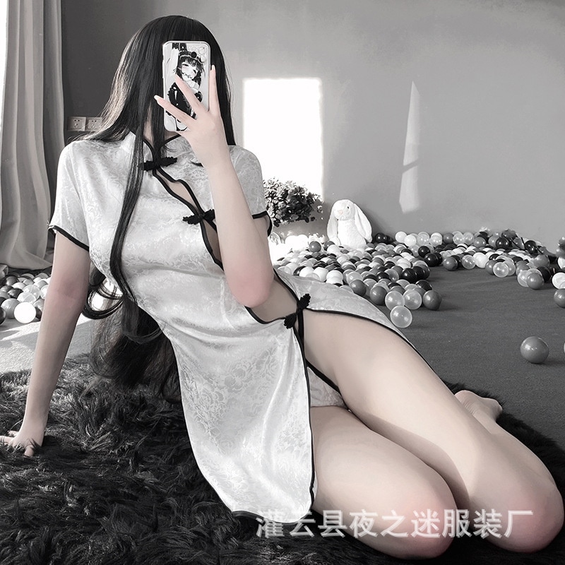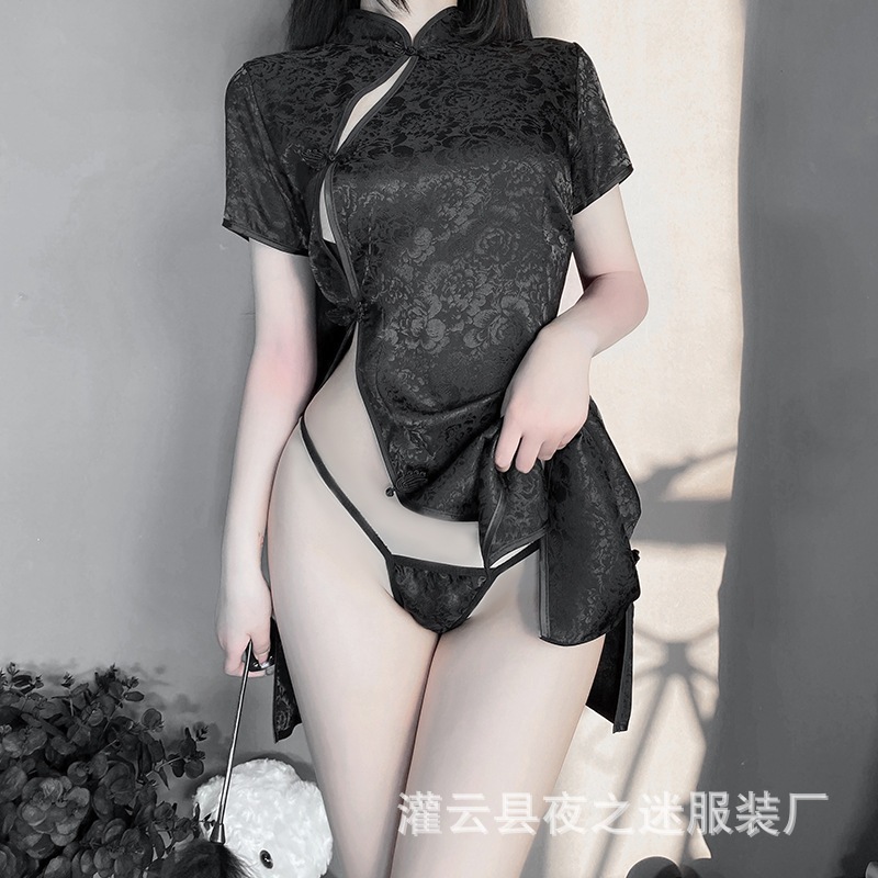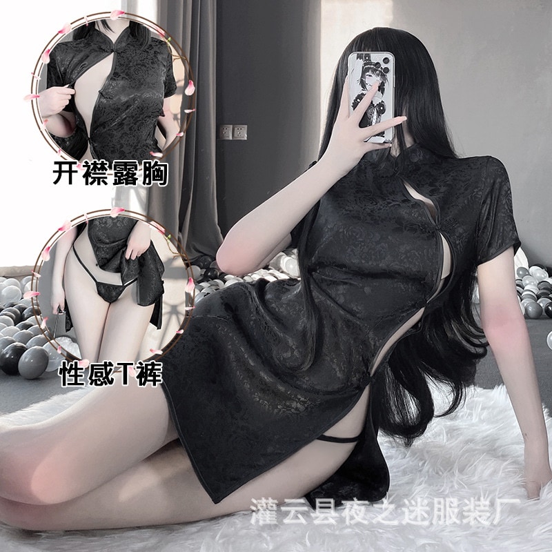 エロいコスプレ セクシーパジャマ情趣下着セットレトロバッグヒップチャイナドレス制服透かし彫りバンドワンピース コスチューム