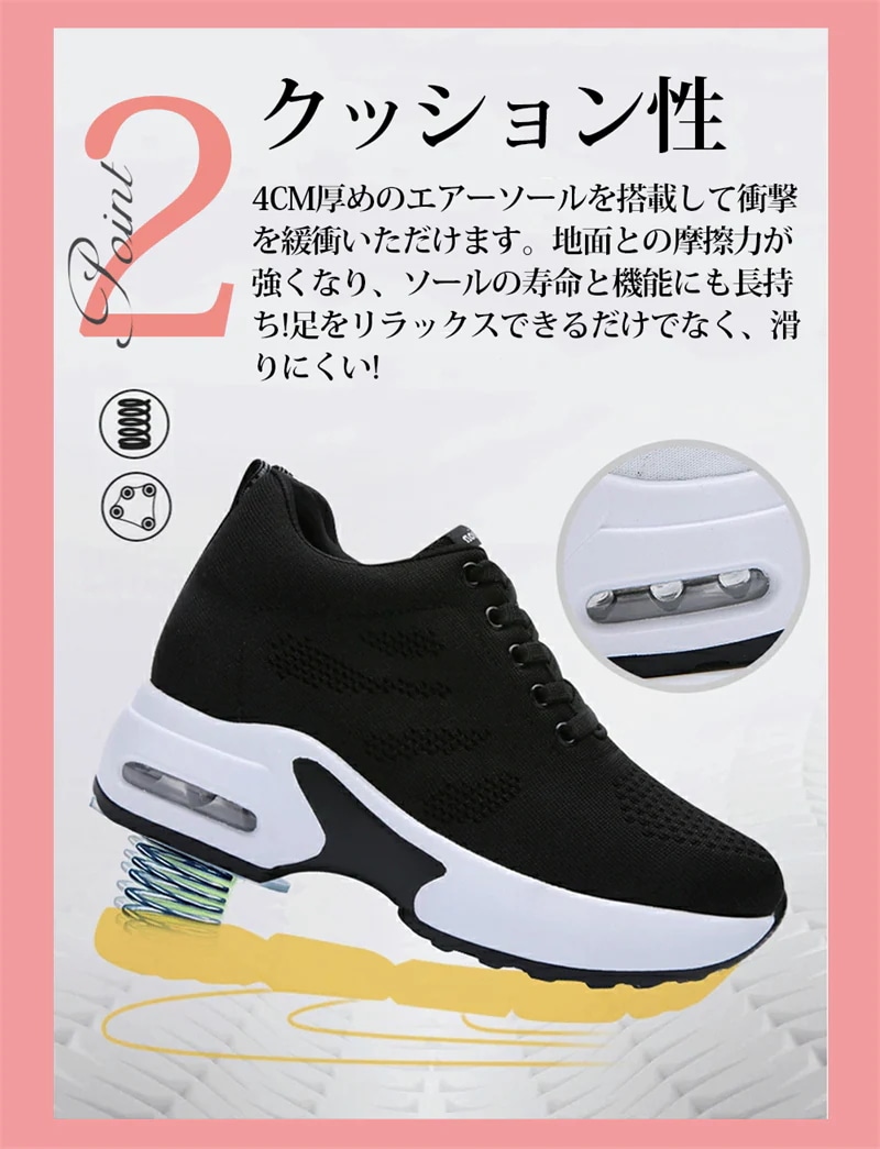 厚底 スニーカー レディース インヒールスニーカー 韓国厚底シューズ ランニング 歩きやすい 9cm ヒールアップ 美脚 身長アップ 痛くない 軽量 幅広 滑りにくい 疲れない