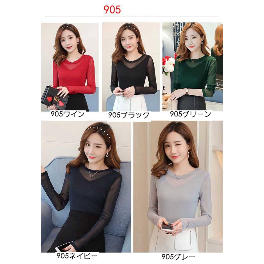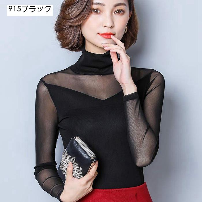 シースルー トップス インナー ハイネック Uネック カジュアル 無地 tシャツ 長袖tシャツ 春秋 レディース カットソー チュール 長袖