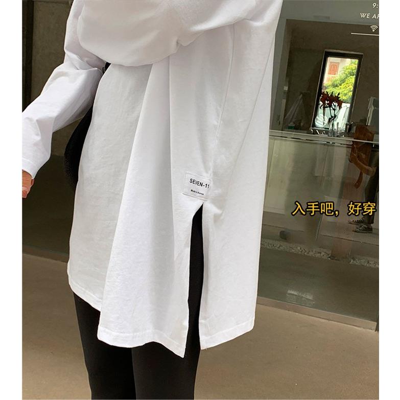 カットソー レディース ロンT トップス Tシャツ プルオーバー レイヤード 長袖 無地 カジュアル ゆったり サイドスリット 重ね着 Tシャツ カットソー