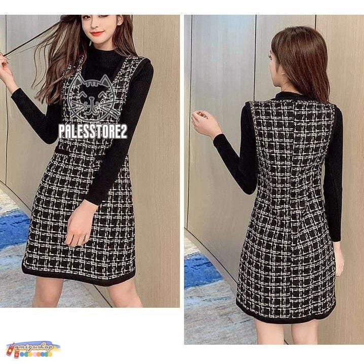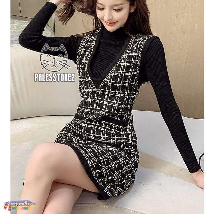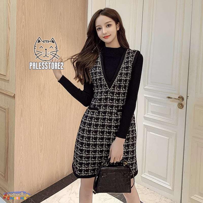 サロペットスカート レディース カジュアル ワンピース ジャンパースカート Vネック ツイード ショート丈 ガーリー レトロ 着回し 体型カバー 可愛い おしゃれ