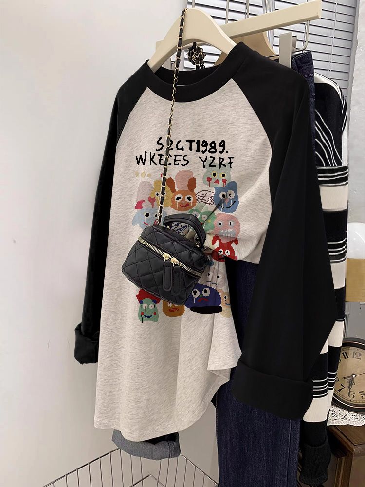 本日の限定商品秋服 レディース 秋服 韓国 ロンT ロングtシャツ レディース ロングtシャツ レディース 長袖 アメリカンスタイル レトロ ベア 長袖Tシャツ カラーブロックボトムシャツ 薄手突っ張