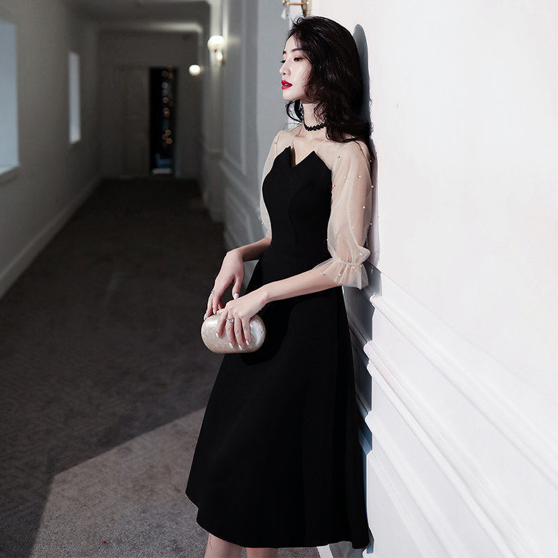パーティードレス ドレス 黒のイブニングドレスの女性フランスの年次総会の誕生日のドレス ドレス