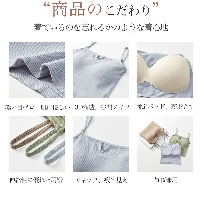 キャミソール カップ付き ショート丈 レディース インナー 下着 肌着 ノースリーブ アンダーウェア ノンワイヤーブラ ブラトップ ゆったり 汗取り かわいい 無地 大きいサイズ