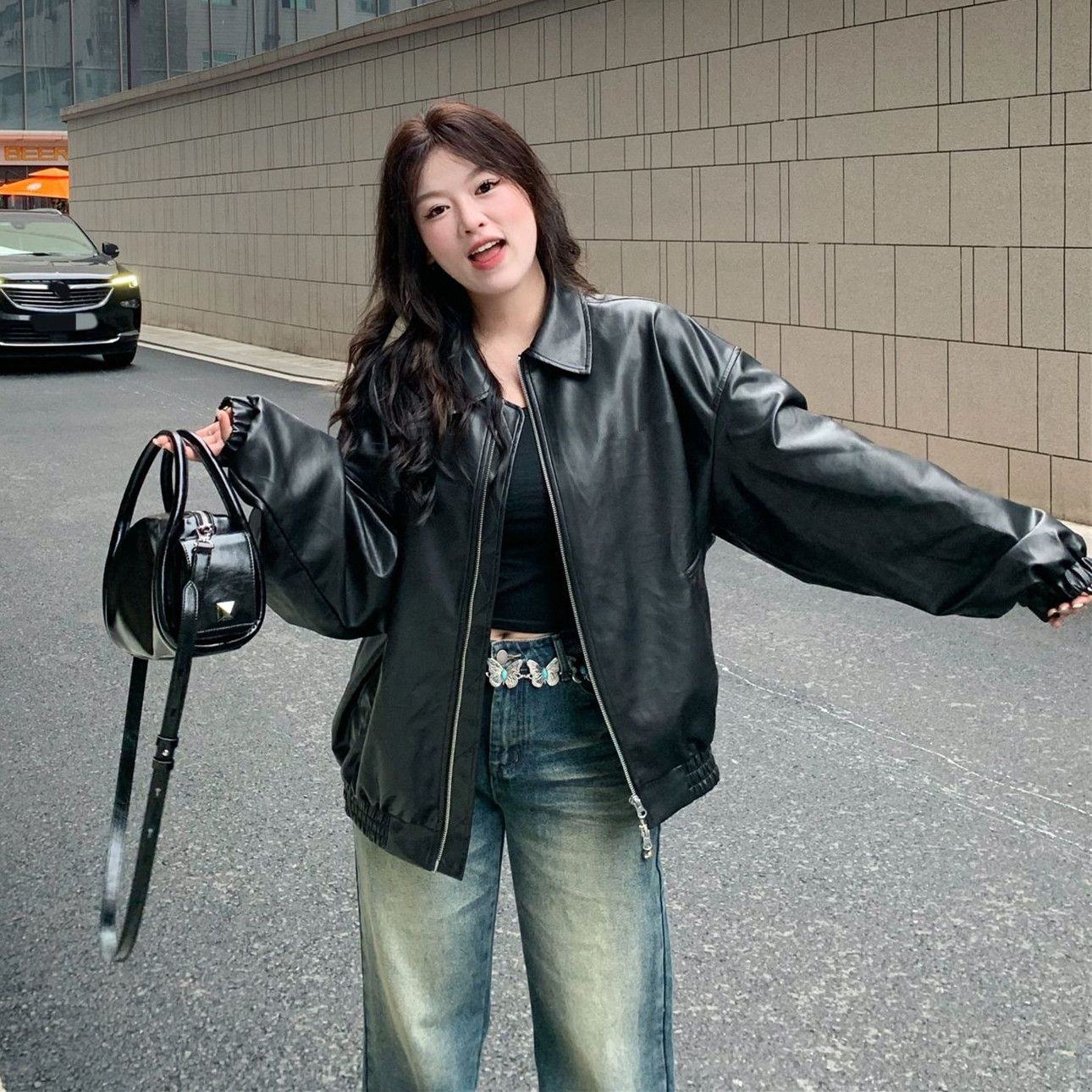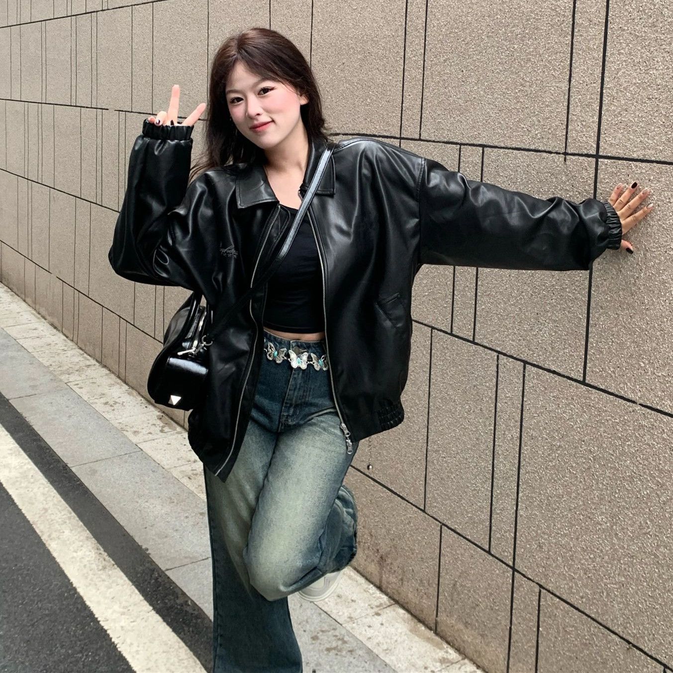 人气新作アウター ブラック PUレザー レザージャケット ジャケット レディース 韓国ファッション 流行りトップスショット丈 革ジャンレディース 着痩せ 秋ジャケットレトロ ルーズ 百掛け バイクウェ