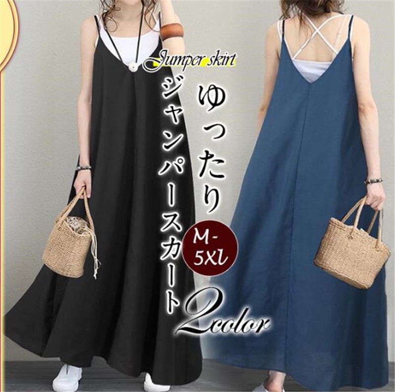 ジャンパースカート ノースリーブ レディース 重ね着 レイヤード サロペット ロング丈 着痩せ オーバーオール カジュアル ゆったり 春夏 ジャンパースカート