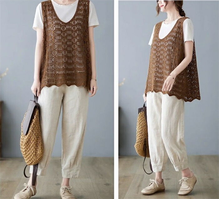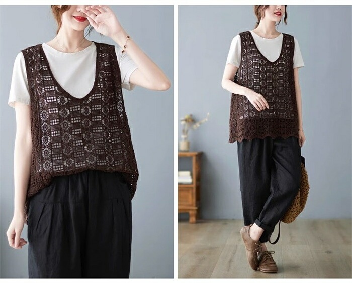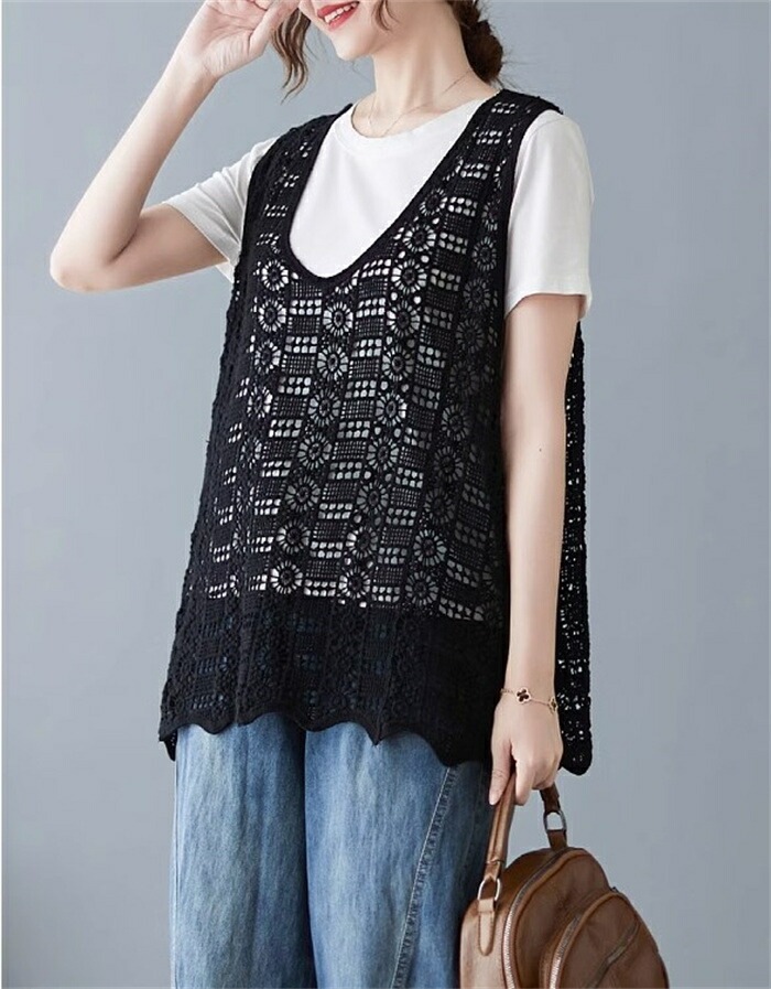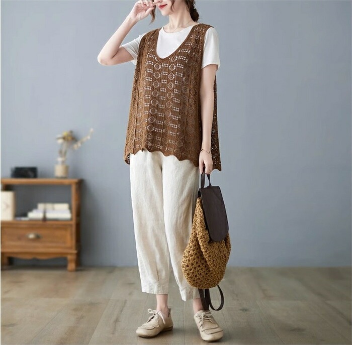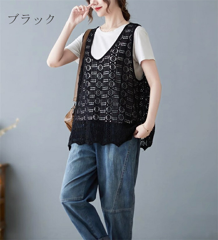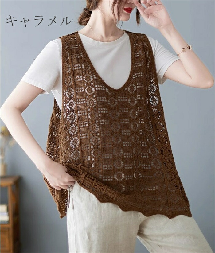 ニットベスト レディース 夏 vネック 透かし編み ニット ベスト vネックニット ゆったり プルオーバー ノースリーブ 大きいサイズ 春ベスト 重ね着 春物 トップス レイヤード サマーニットベスト