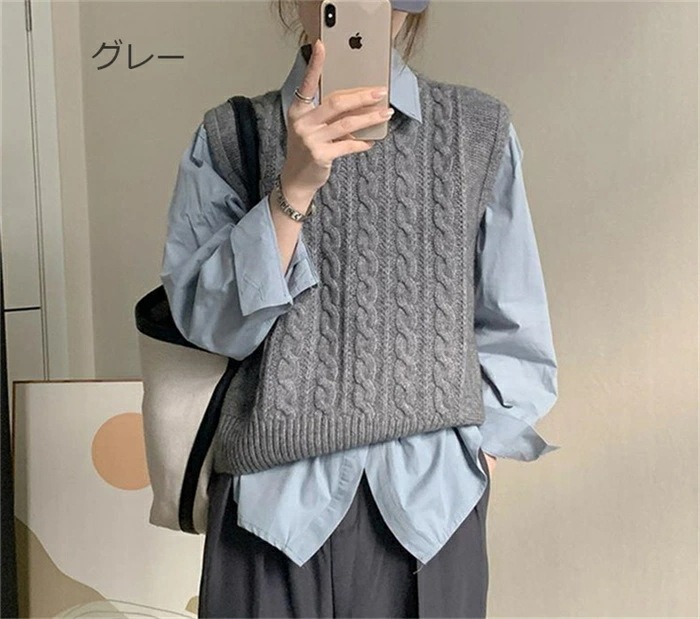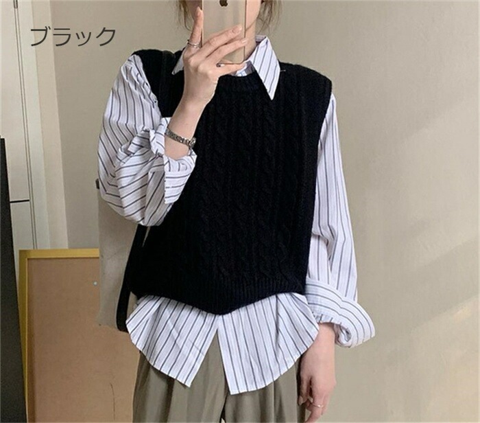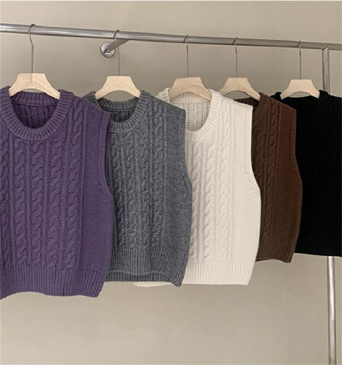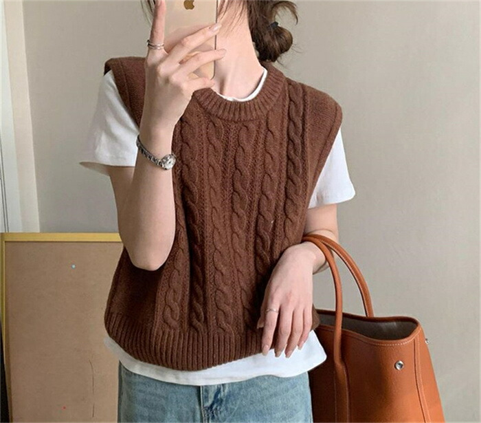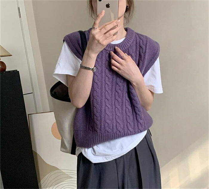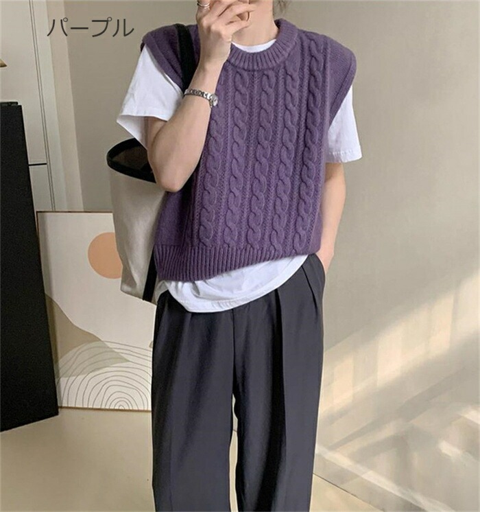 ニット ベスト レディース ニットベスト ジレ クルーネック トップス ノースリーブ リブ編み ニットトップス セーター 重ね着 ニットセーター 冬 秋 アウター インナー 無地 ショート丈 レイヤー