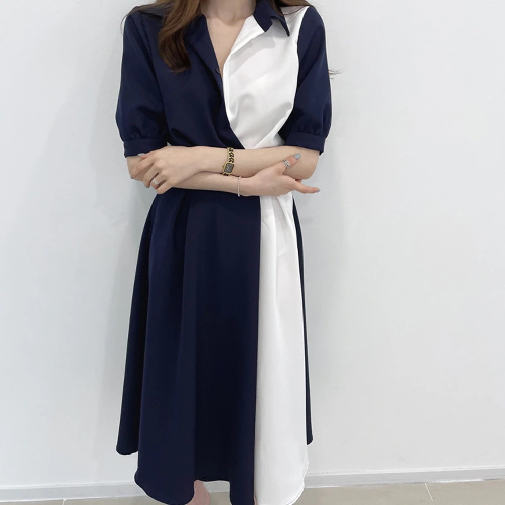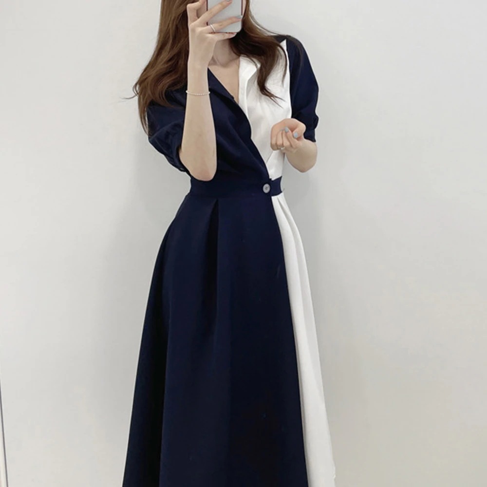 半袖ワンピース韓国 無地 ミモレ丈 七分袖 ワンピース ドレス [2カラー] その他 ワンピース ドレス
