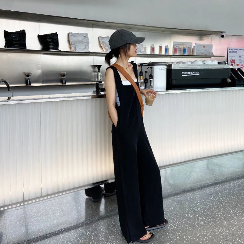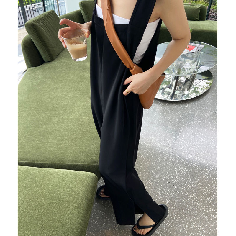 サロペット オールインワン オーバーオール 裾スリット オールインワンサロペットパンツ ワイドパンツ サロペット春 夏 秋 ロング丈 ワイド パンツ 落ち感 きれいめ キャミワンピース