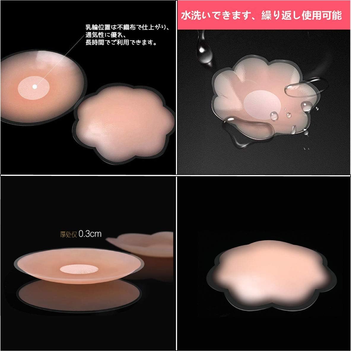 ニップレス シリコンパッド ノーブラ感覚で涼しい 洗える 繰り返し使える 痛くない かぶれにくい 乳首隠し 高い粘着吸着力 花形男女兼用 丸形花形7.26.5男女