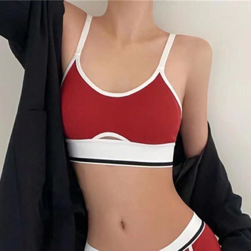 配色な色味の一着で気持ちも前向きに 6色展開 ブラレット ブラトップ スポーツブラ セクシー 見せブラ カップ付き 配色 ブラレット下着 ワイヤレス ブラジャー ランジェリー 肌着 ブラ
