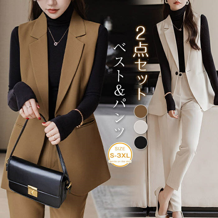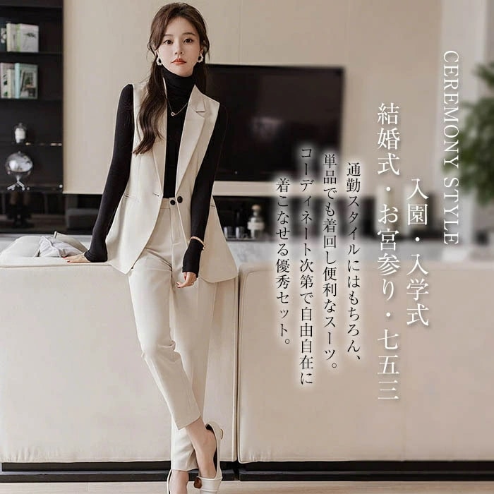 セットアップ 2点セット レディース スーツ パンツスーツ ベスト ジレ&テーパードパンツ セレモニー キレイめ ビジネススーツ 通勤スーツ フォーマル 入学式 卒業式 入園式 卒園式 着痩せ 通勤