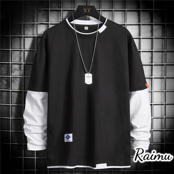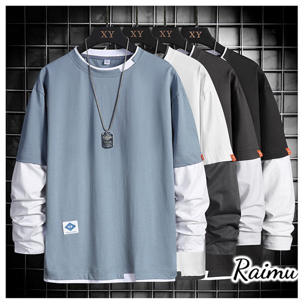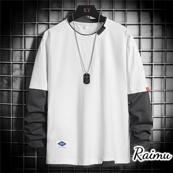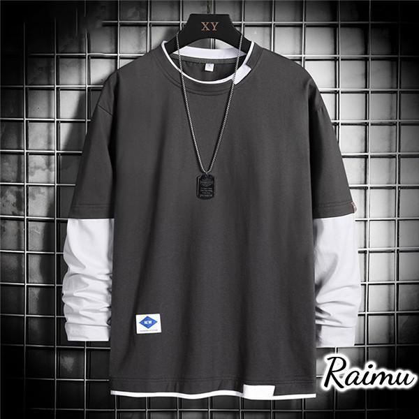 Tシャツ メンズ 長袖 ロングTシャツ ロンT 長袖Tシャツ カットソー 重ね着 通学 春秋 大きい 体型カバー 無地 おしゃれ Tシャツ