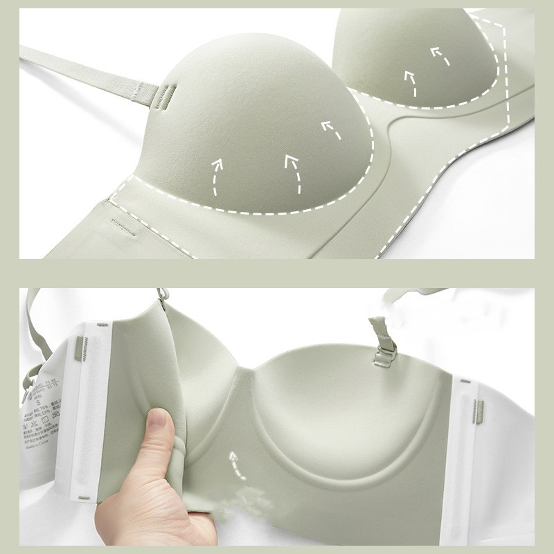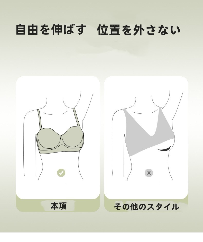ブラジャー ノンワイヤー シームレス 美胸パッド付き 痕跡のない大きな収副乳下垂防止胸aaカップ肩ベルトなし滑り止め平胸に載せる ブラジャー