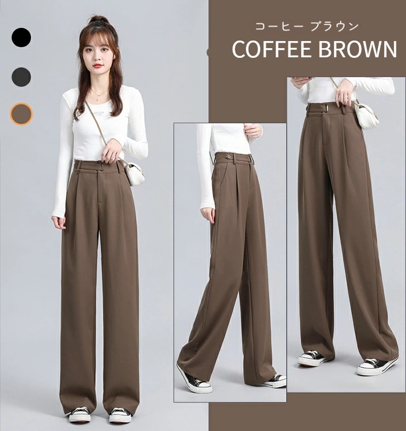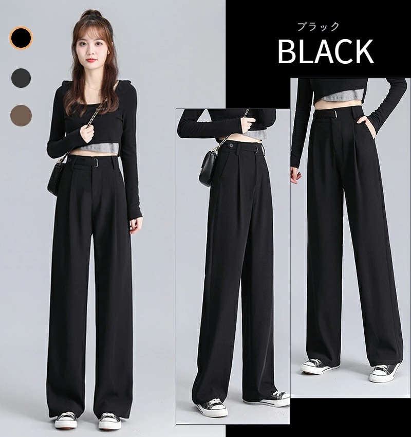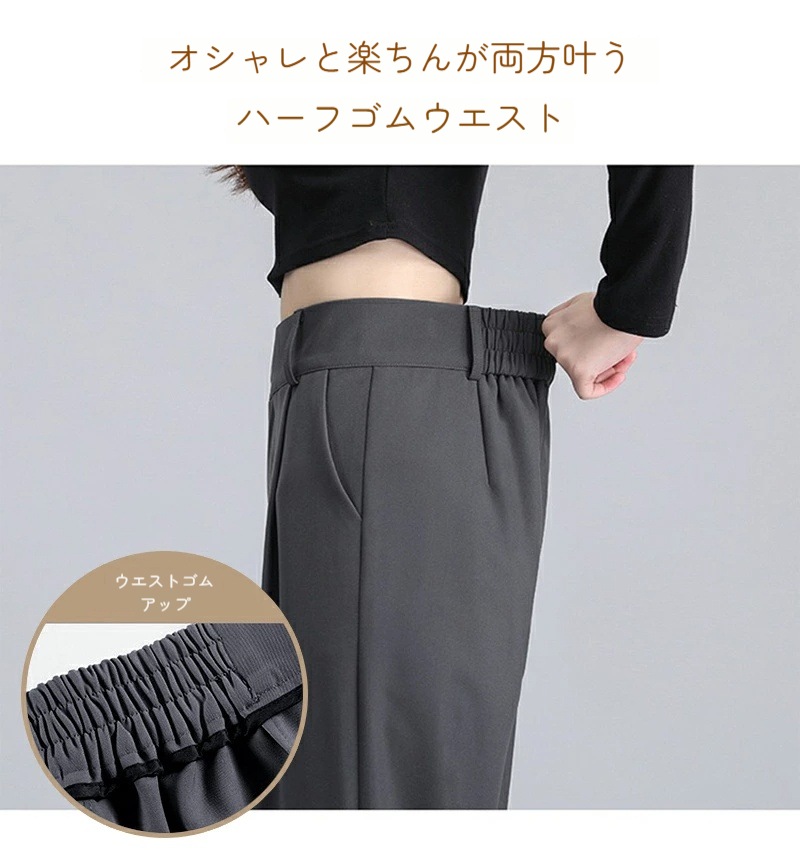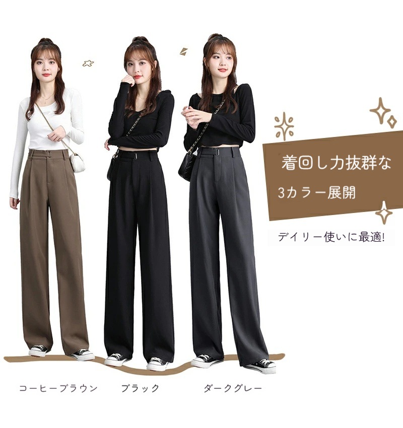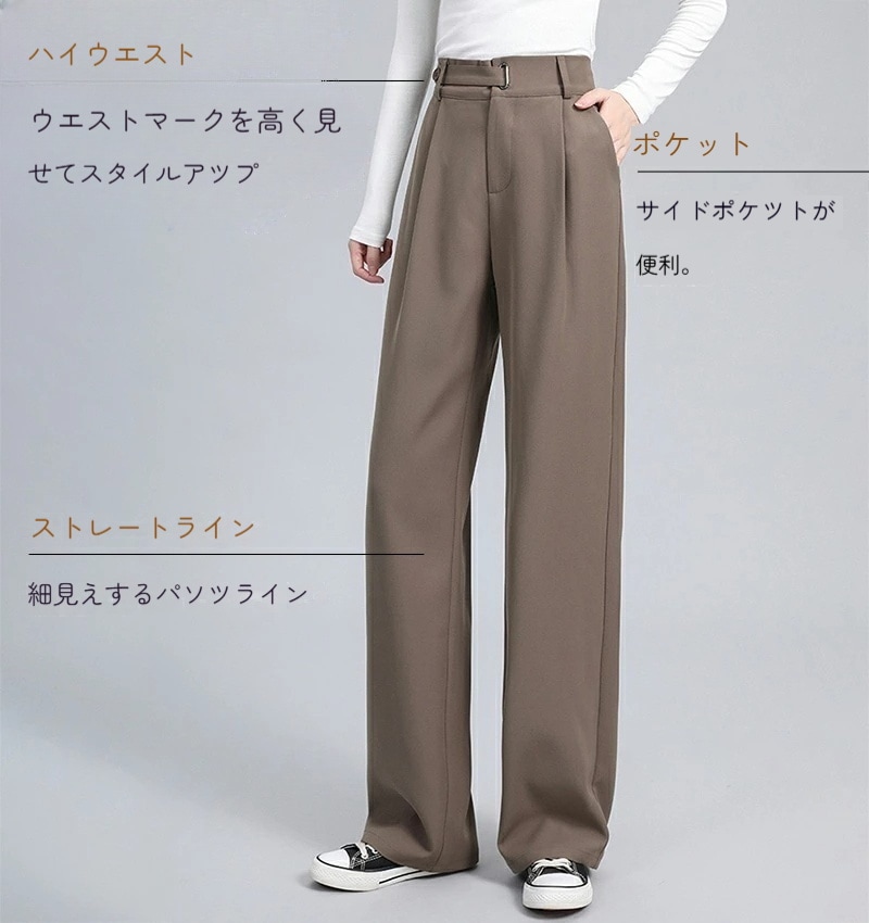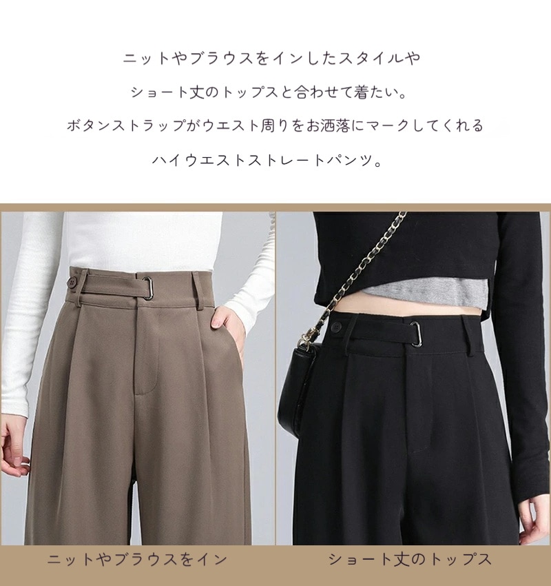 ハイウエスト 美脚 脚長 ストレートパンツ レディース ボタンストラップ ワイドパンツ 女性 ボトムス ワイド パンツ ハイウエストパンツ ズボン 長ズボン ロングパンツ スリム スタイルアップ