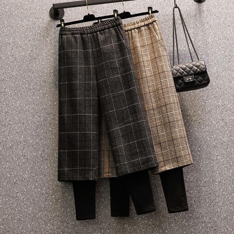 品質いいな新品 ガウチョパンツ レディース ワイドパンツ フェイクレイヤード ボトムス 暖かい 裏起毛 肌触り ルームウェア カジュアル 体型カバー 可愛い 秋冬