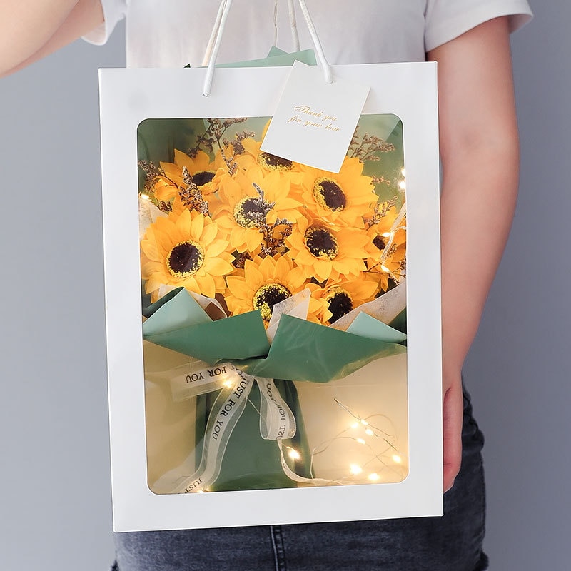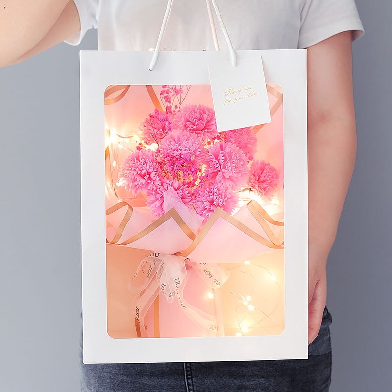 3日出荷ソープフラワー ギフト 人気 花束 誕生日プレゼント クリアボックス メッセージカード付き 手提げ付き 枯れない 石鹸花 女性 父の日 敬老の日 バレンタインデー クリスマス 新 結婚