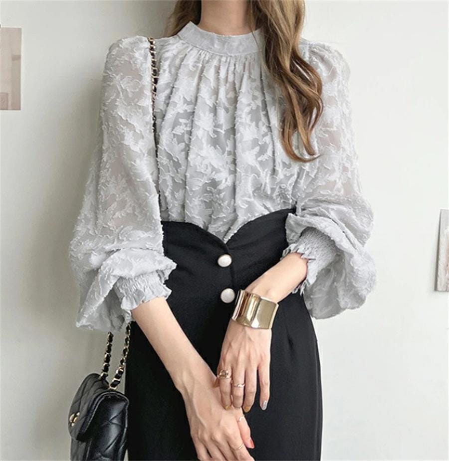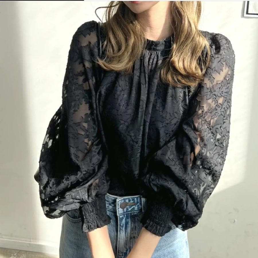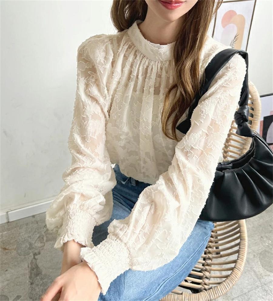 ブラウス レディース ブラウス オフィスブラウス 長袖 白レース透かし彫り オシャレブラウストップス 韓国風 大人 通勤OL ゆったりシャツインナー