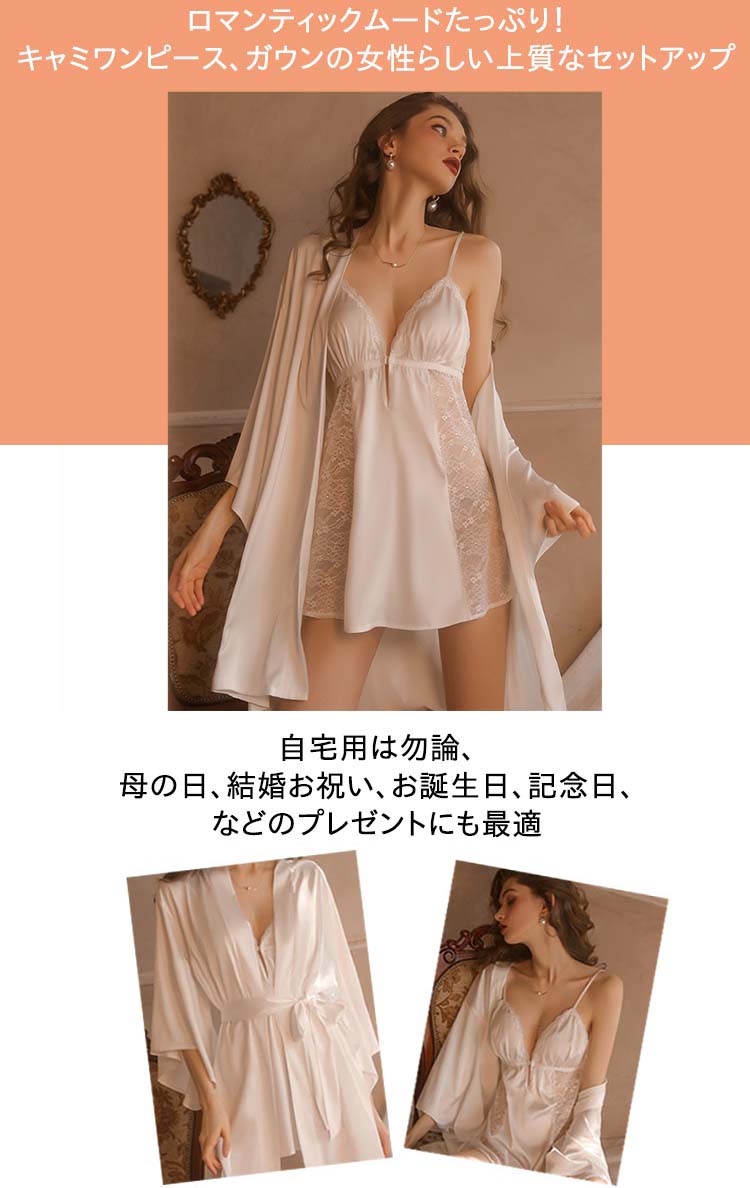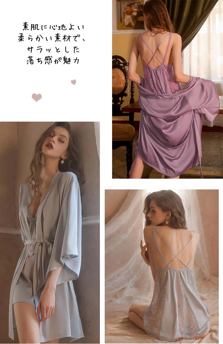 バスローブとスリップのセット ガウン ベビードール ネグリジェ ナイトガウン キャミソール セクシーランジェリー セクシー ランジェリー スリップ パジャマ ルームウェア セットアップ バスローブ 部