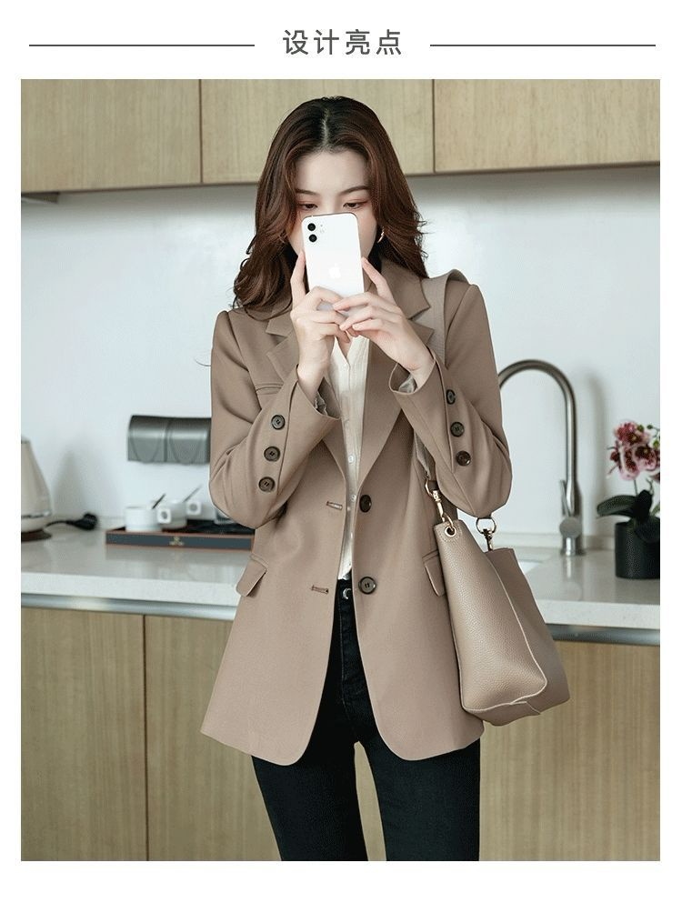 スーツ カーキのレディーススーツジャケットプレミアムセンスのニッチ2025新しい秋の韓国語バージョンの緩いカジュアルスーツの女性 その他 スーツ