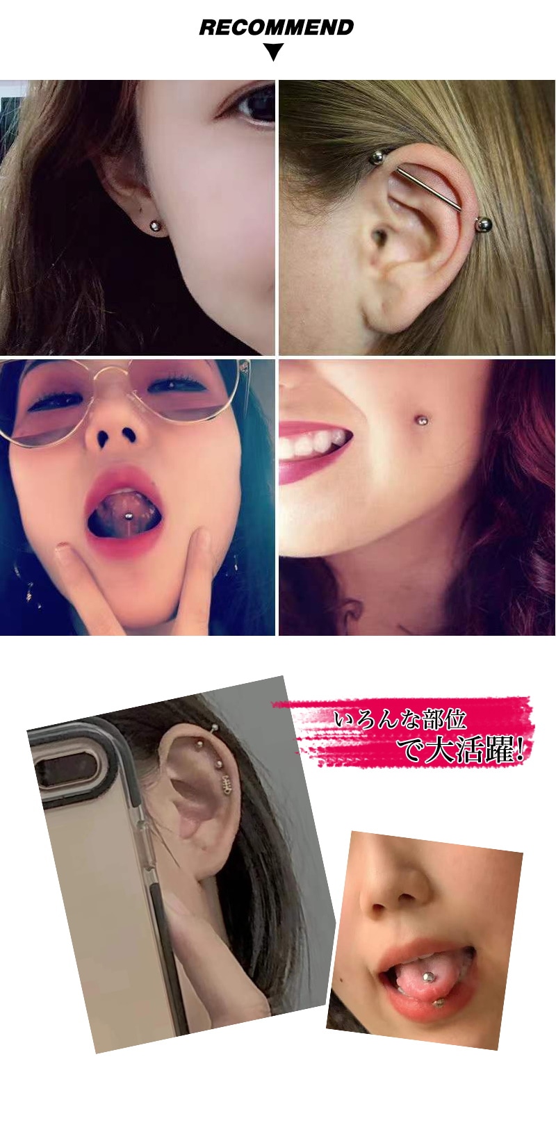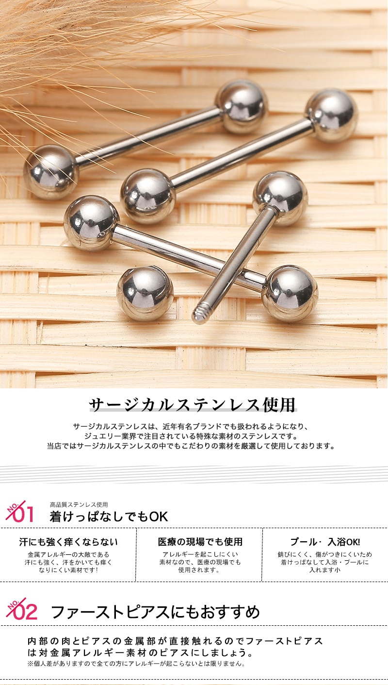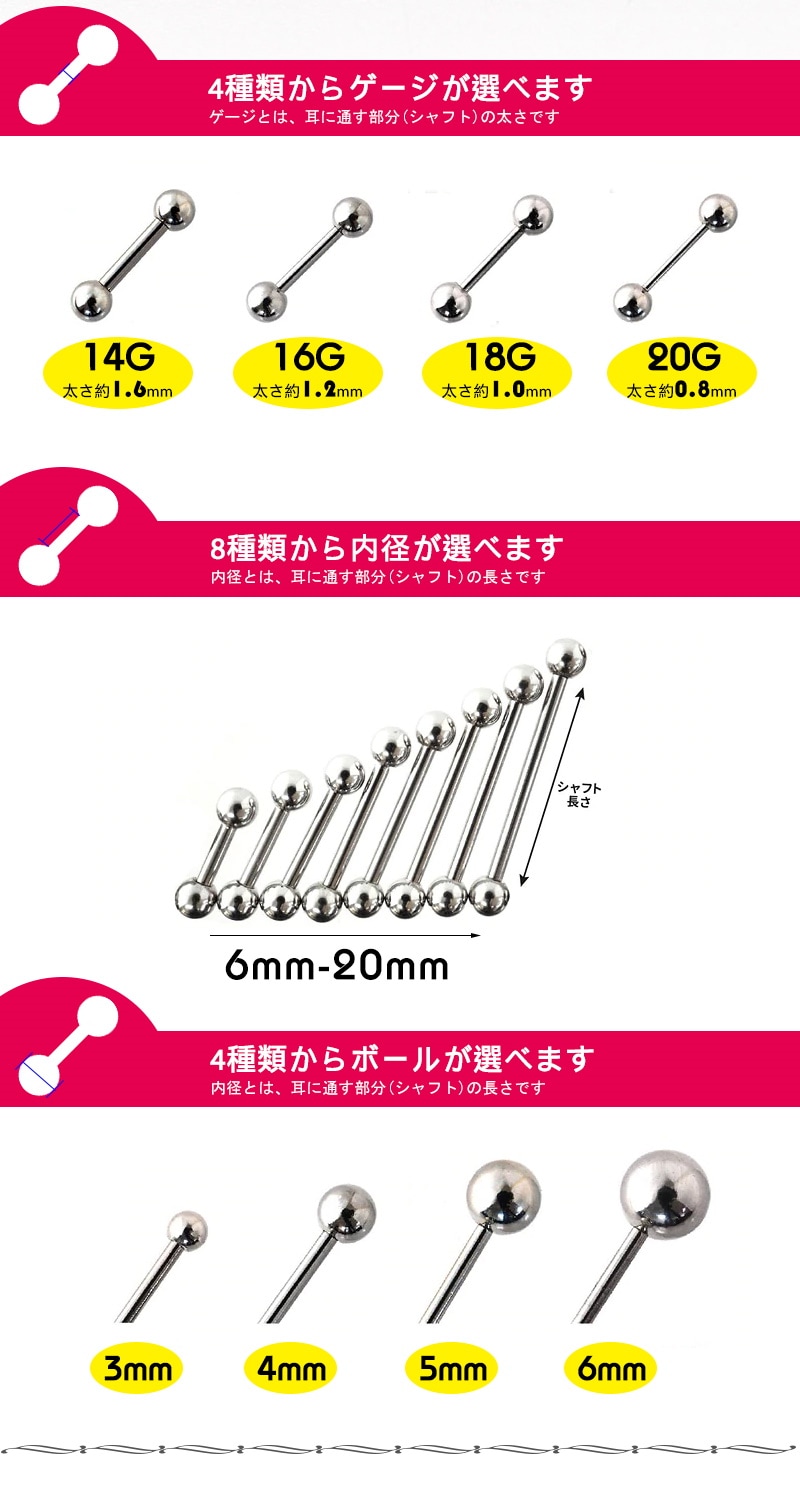 ボディピアス 軟骨ピアス 片耳用 14G 16G 18G 20G 舌ピアス ストレートバーベル ファーストピアス セカンドピアス 金属アレルギー対応 ネジ式 韓国ファッション