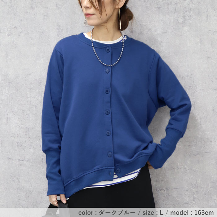 カーディガン レディース トップス おしゃれ リブ長 スウェットカーデ 長袖 羽織 2WAY ラウンドヘム[郵3]^v186^ カーディガン