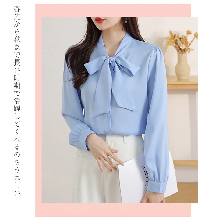 レディース ブラウス トップス 長袖シャツ スカーフタイ プルオーバー カジュアル フォーマル オフィス きれいめ 女性 普段着 通勤 OL リボン