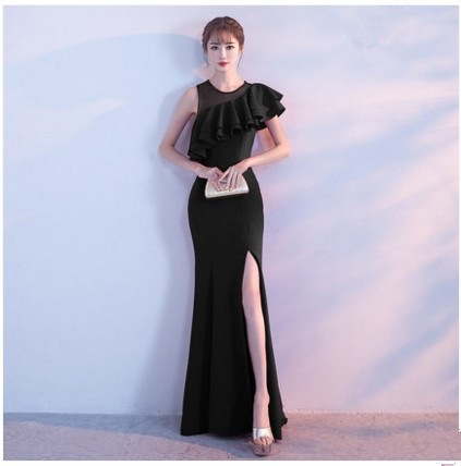 宴会 イブニングドレス 新作 気質 女王 気質 フィッシュテール ロングセクション スリム ハイエンド 雰囲気 イブニングドレス ドレス