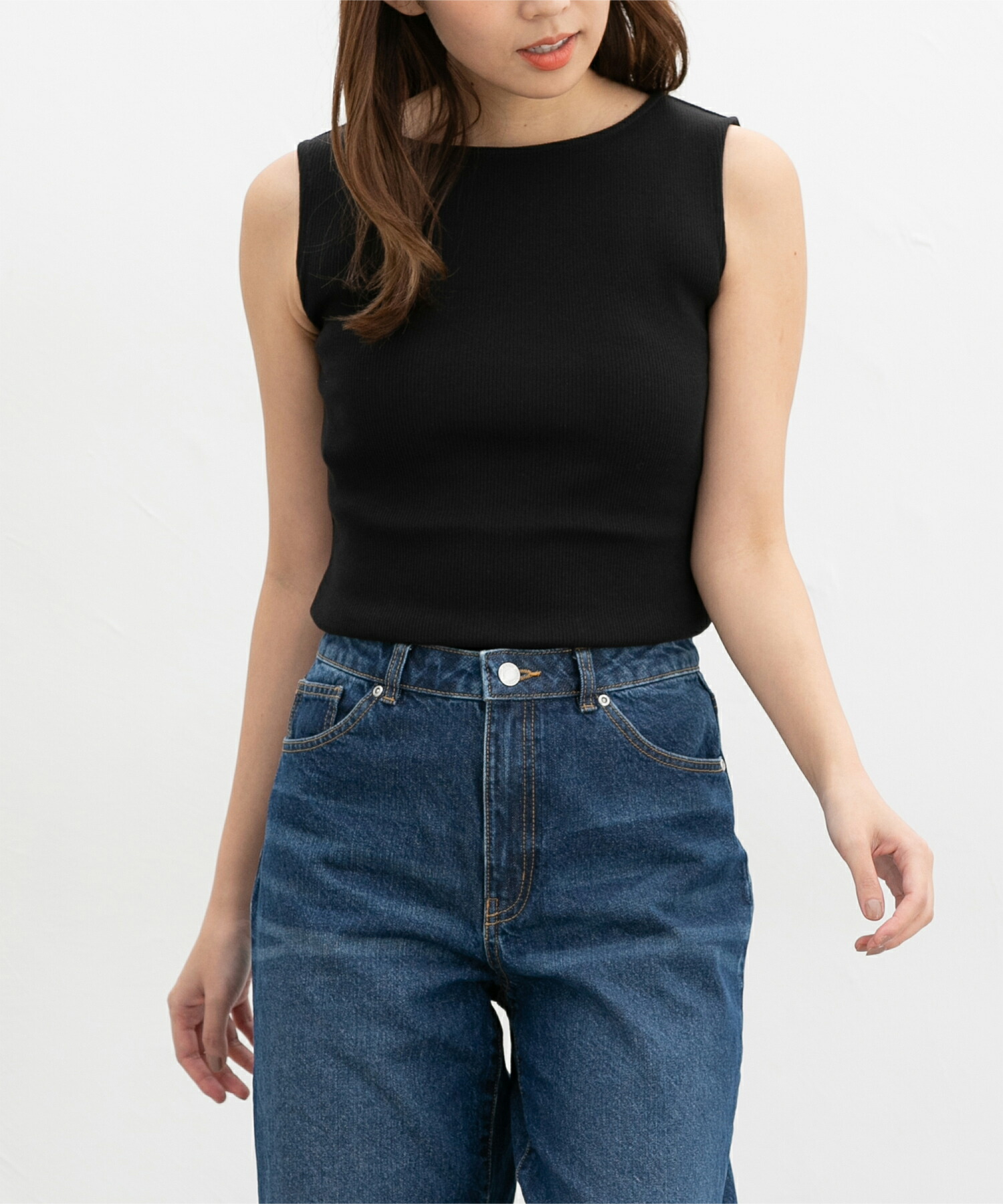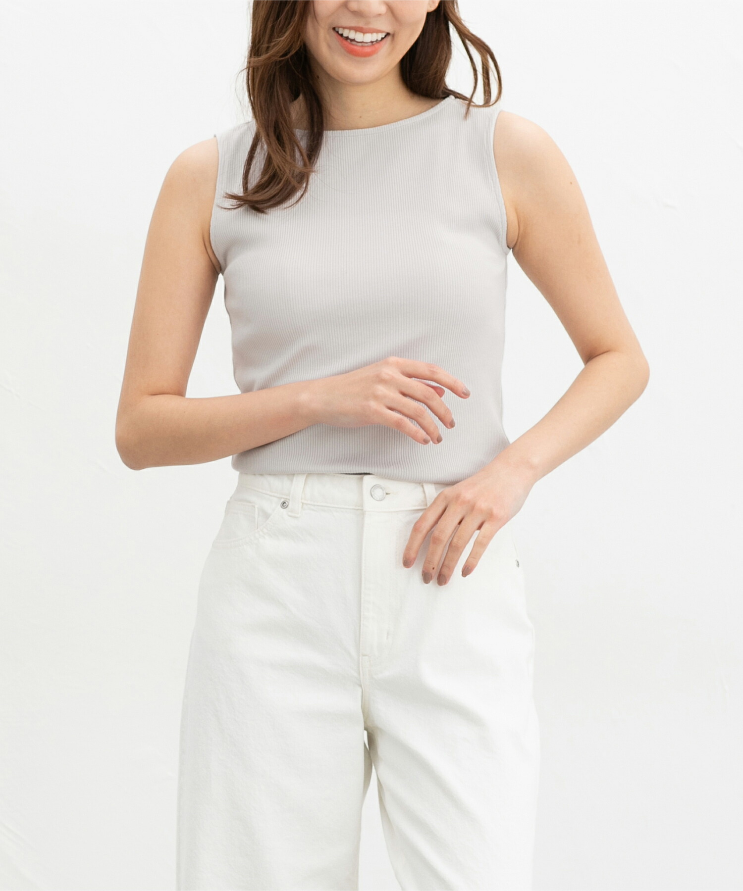 Honeys ボートネックタンク トップス タンクトップ UVカット ボートネック 無地 綿混 テレコ キャミソール