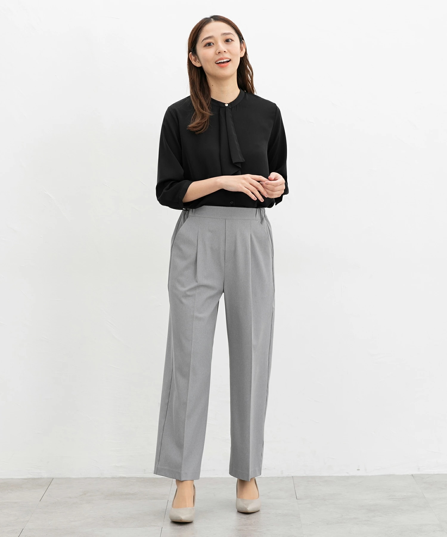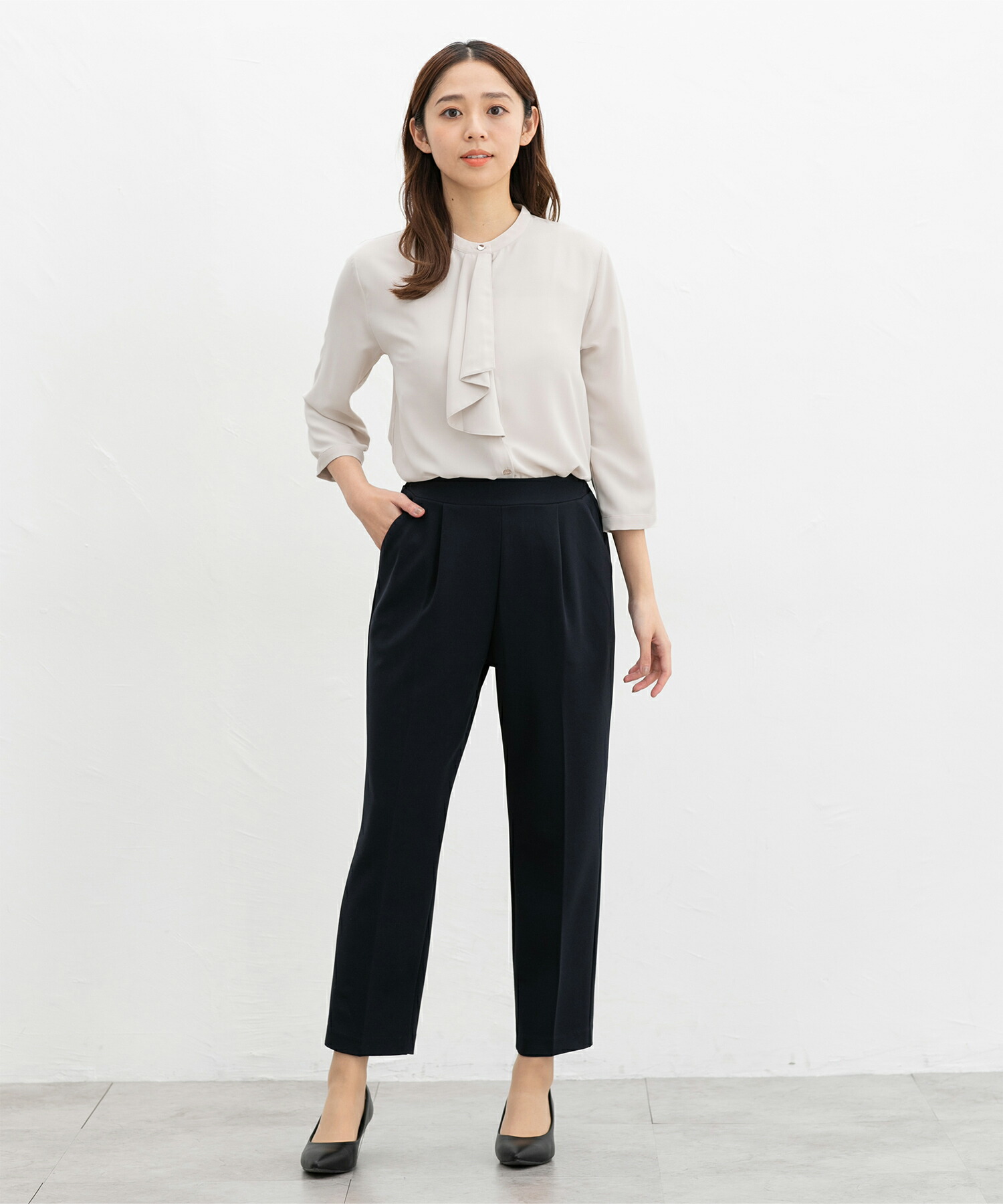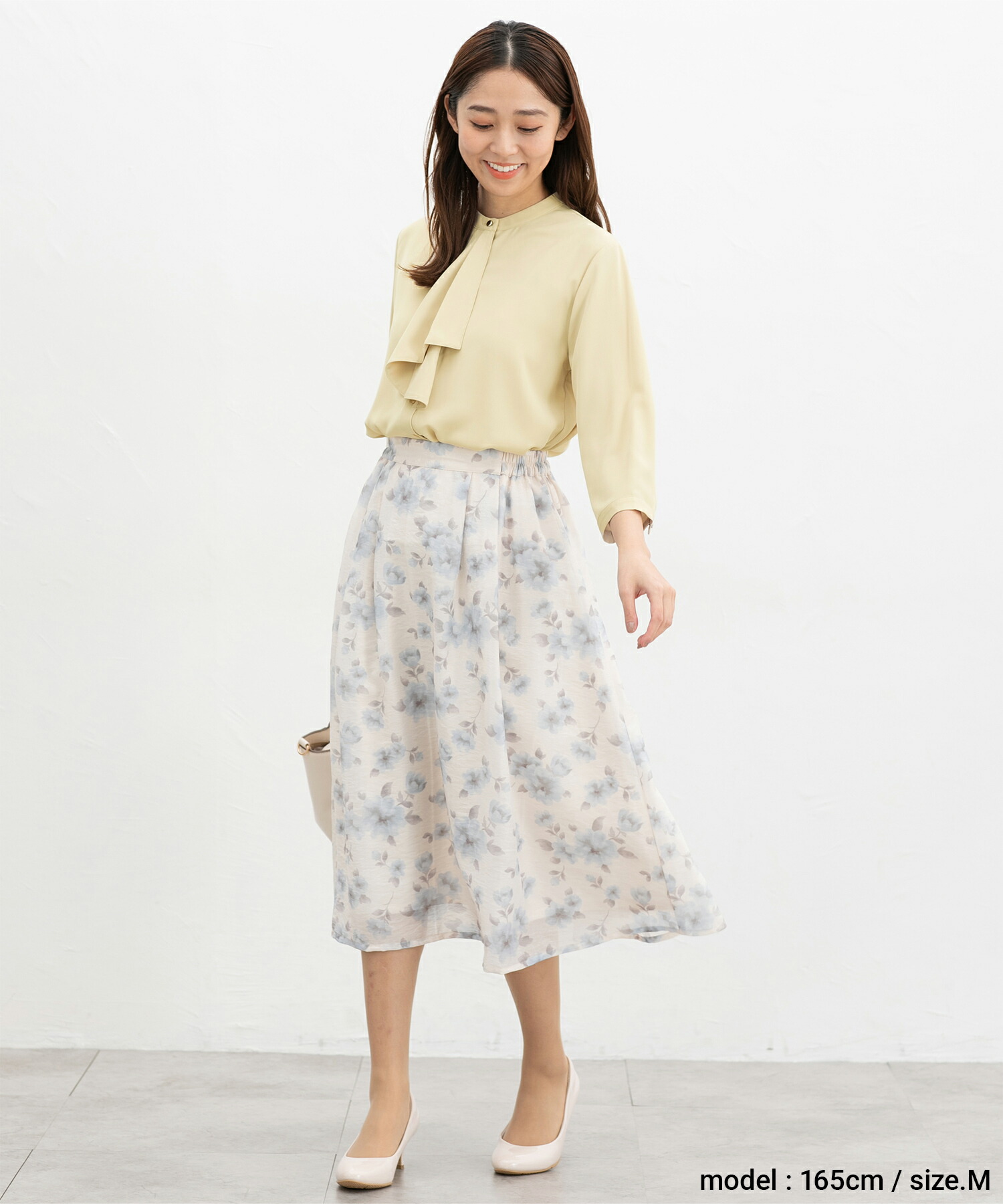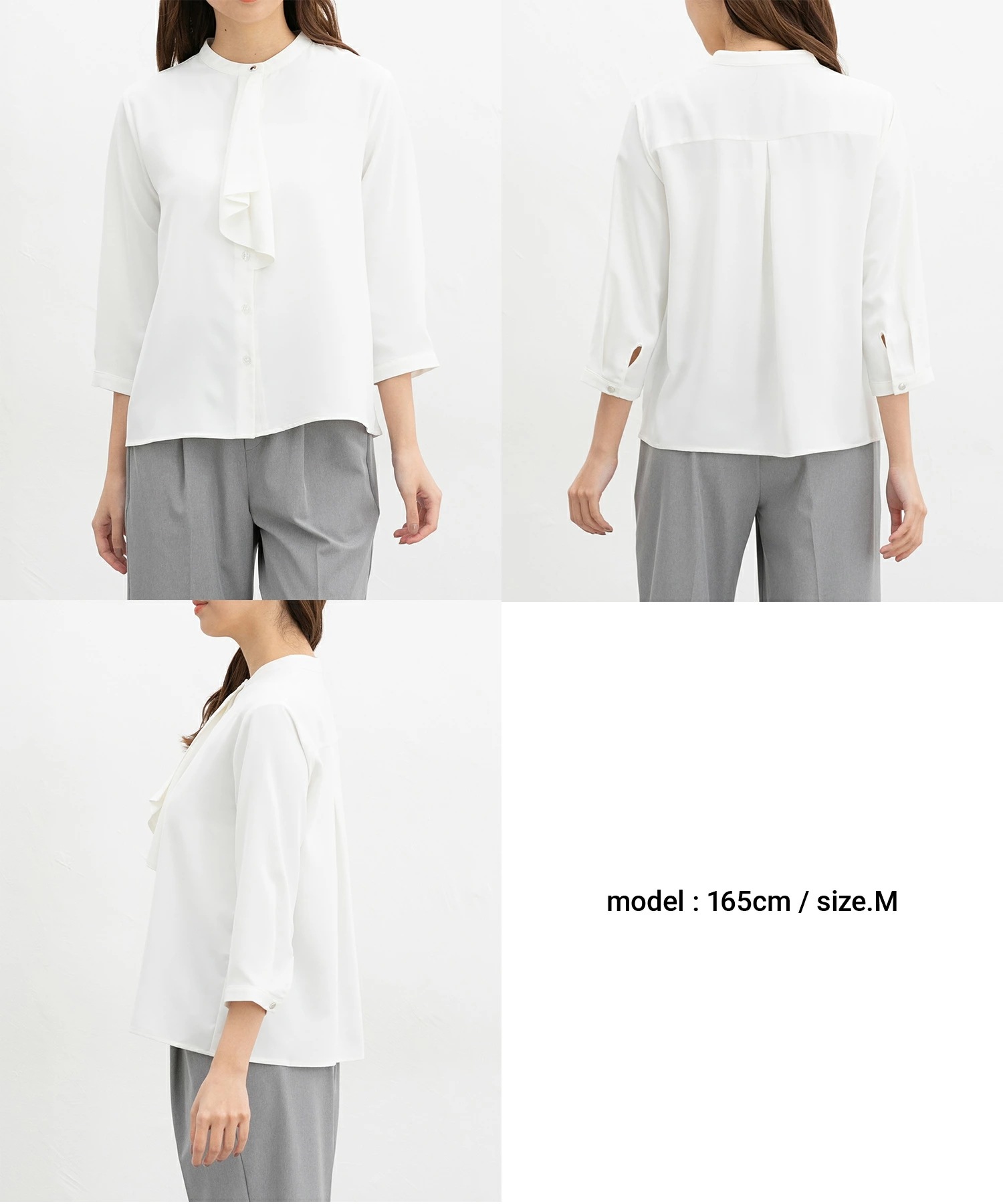 Honeys 7分袖ボウタイブラウス トップス ブラウス ボウタイブラウス 大きいサイズ オフィス きれいめ シャツ ブラウス