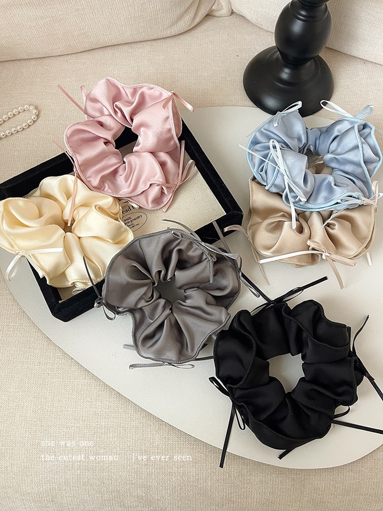 qoo10カラコンアヌアバレエ風リボンリボン髪ひも女性サテン大腸髪輪頭ひも団子頭皮筋頭飾り ヘアゴム シュシュ