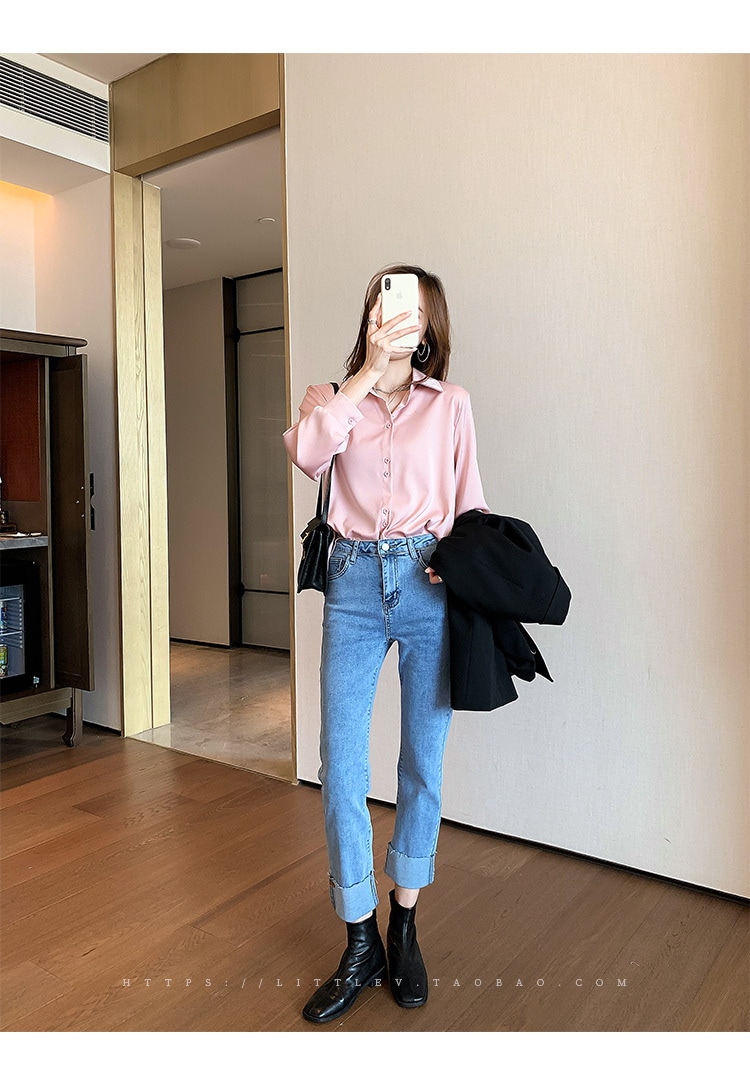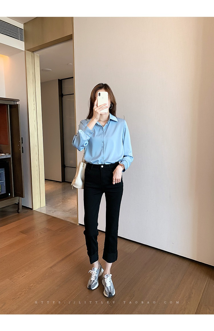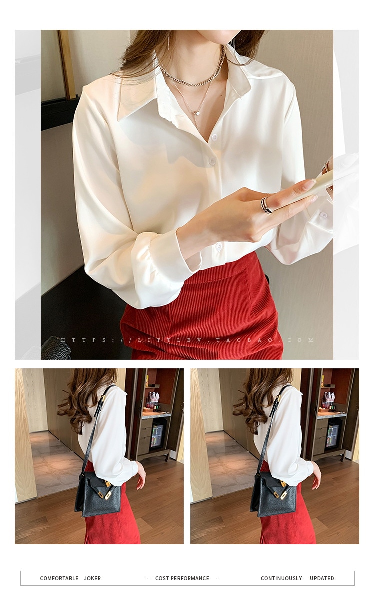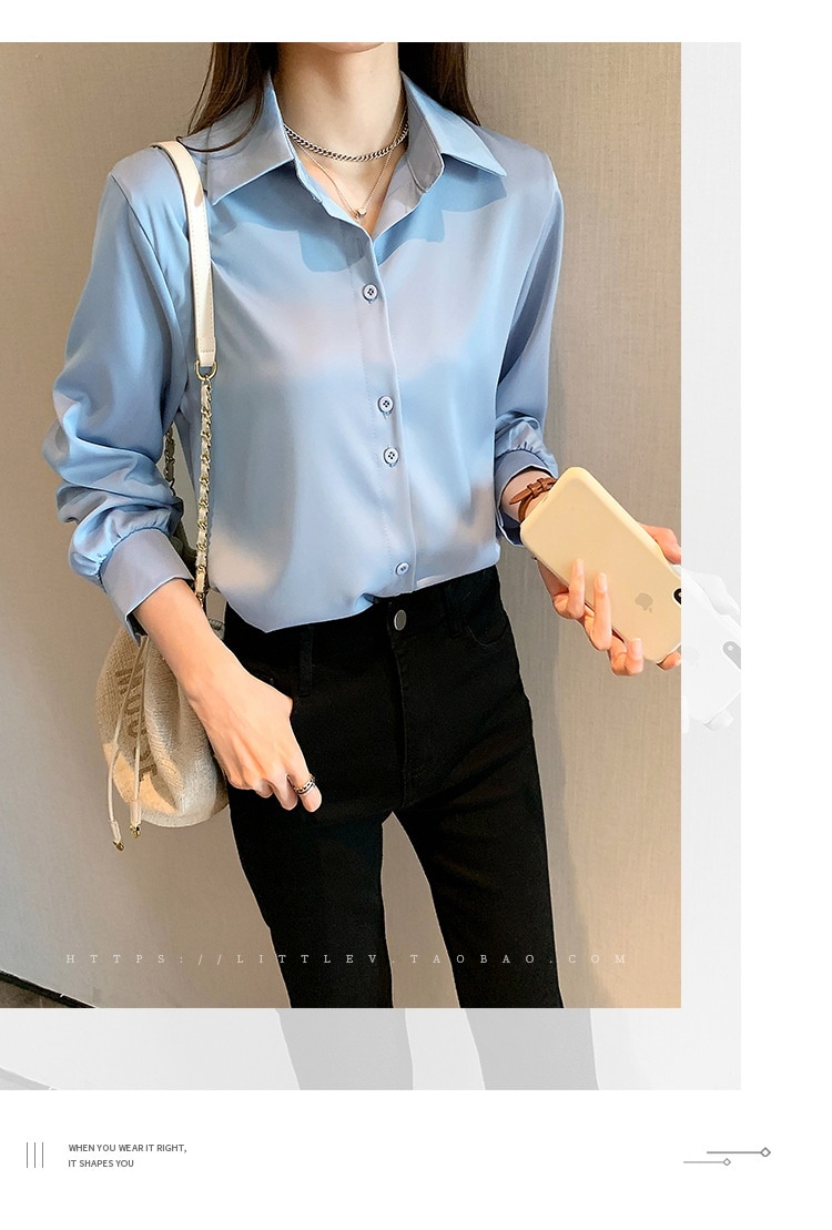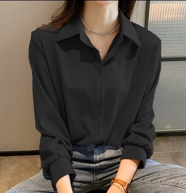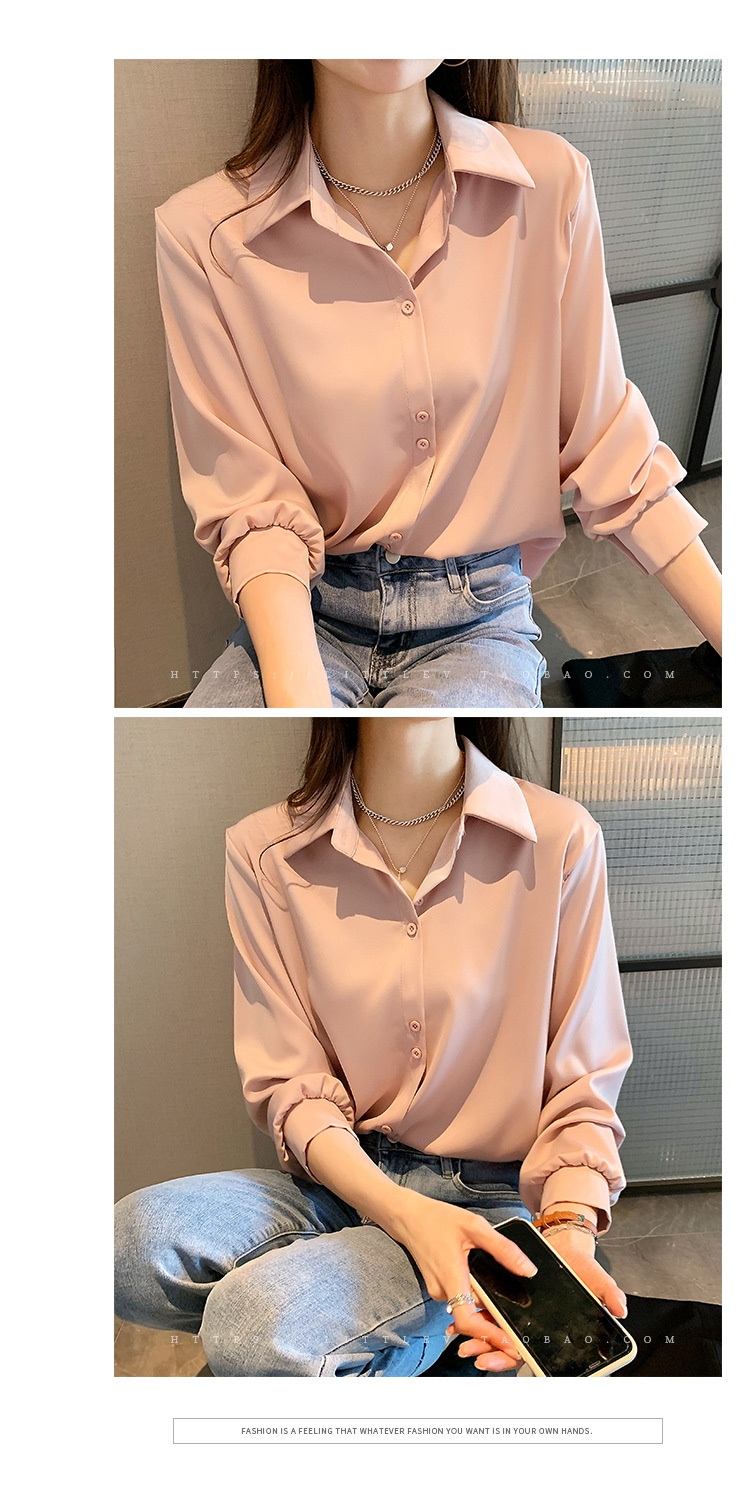 今っぽシアーシャツ使える シフォンブラウス今っぽシアーシャツ大きいサイズレディース夏服職業長袖トップスサテンシャツブラウス韓国ファッションシフォン無地