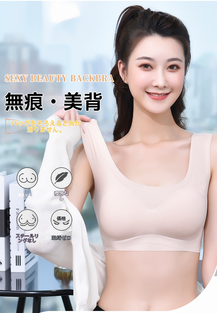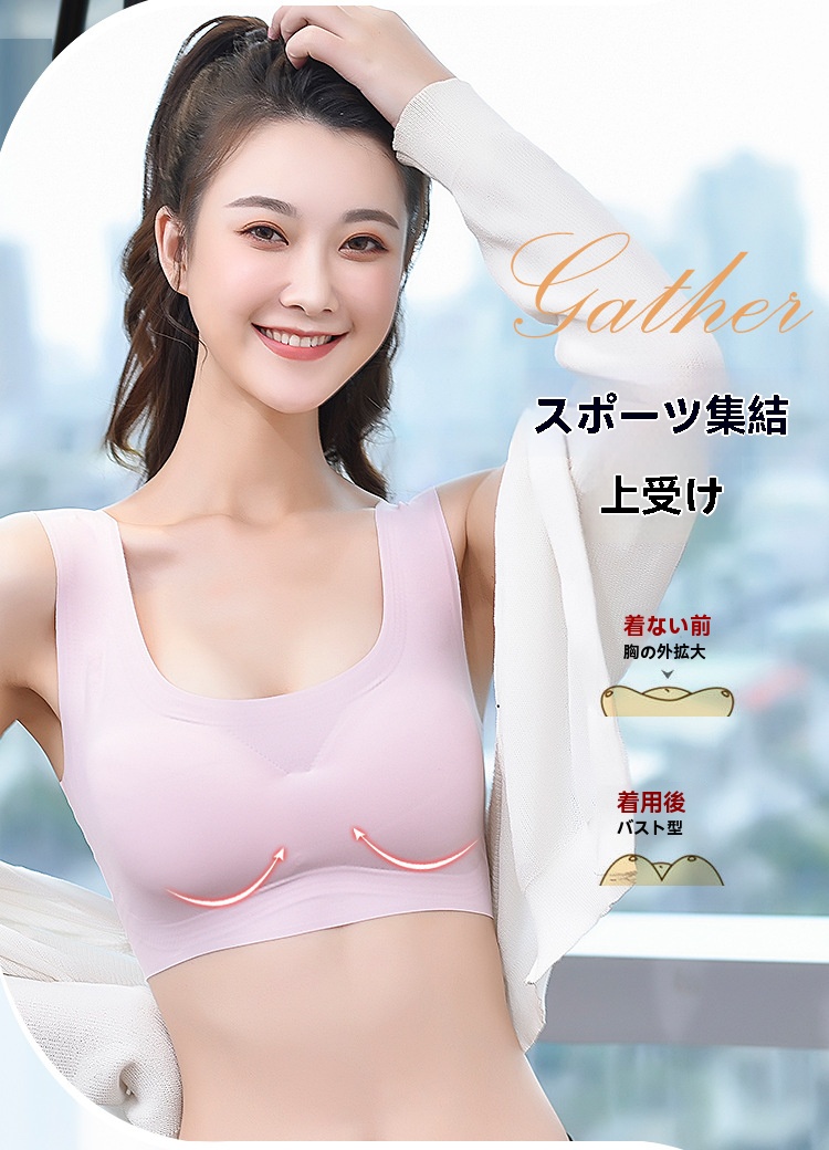 新作 シームレスブラ ナイトブラ ノンワイヤ― おしゃれ 締め付けない 楽ちん 大きいサイズ 響かない ブラジャー ヨガ ピラティス ジム カップ付き 脇高 脇肉 育乳