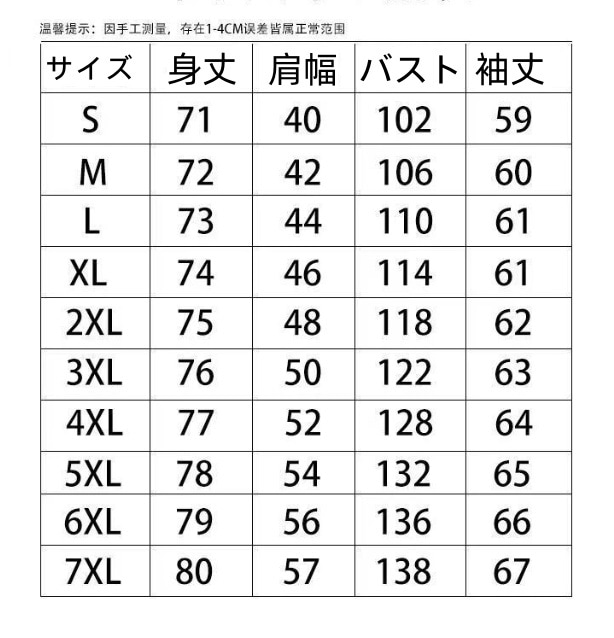 サイズ: S M L XL 2XL 3XL 4XL 5XL 6XL 7XL 8XL