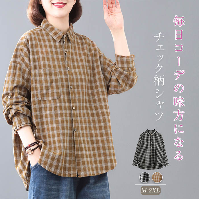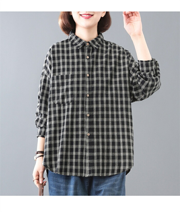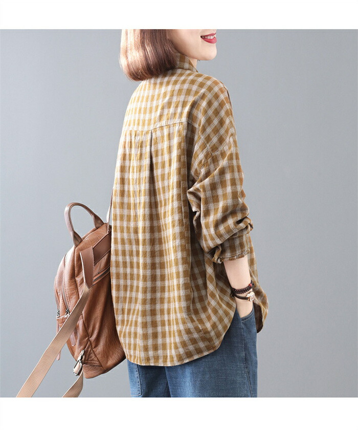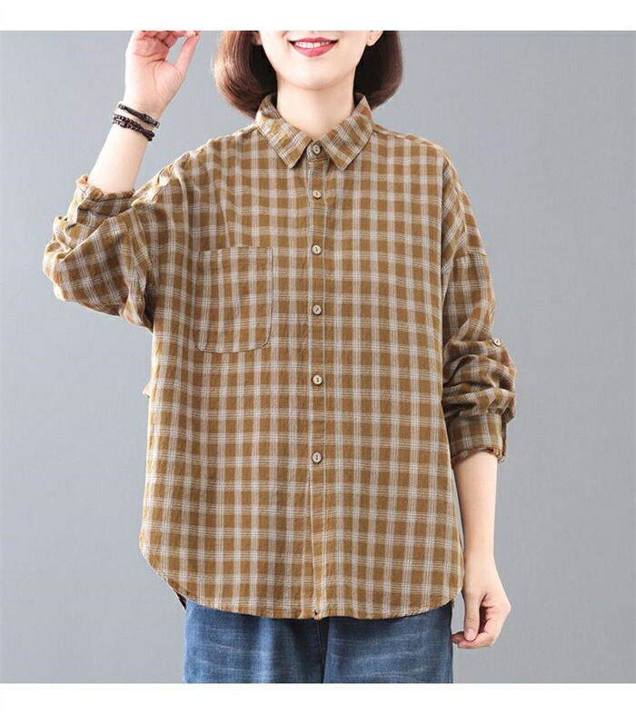 シャツ レディース 長袖 ギンガムチェック シャツ 大きいサイズ トップス 春秋 ゆったり カジュアル 柔らか 仕事 通勤 ベーシック 着瘦せ ナチュラル 着まわし