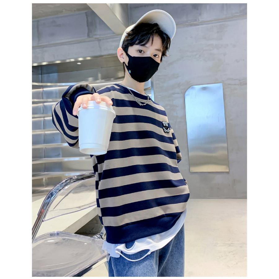 子供ジャージ ストライプ柄 トレーナー パーカー 男の子 長袖トップス スウェット 子ども服 キッズ ゆったり 通学 運動着 春秋 Tシャツ