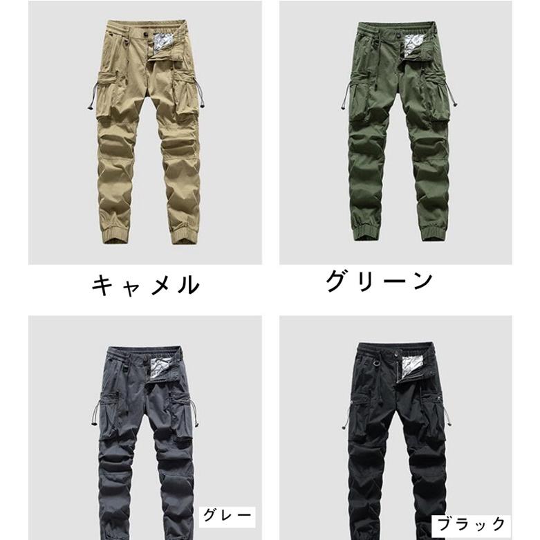 ボトムス ミリタリーパンツ メンズ テーパード ワークパンツ ズボン 無地 ウェストゴム 作業着 カーゴパンツ ロングパンツ