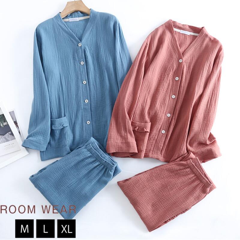 ガーゼパジャマ メンズ レディース 2重ガーゼパジャマ ペアパジャマ 部屋着 柔らか 長分袖 長ズボン ルームウェア 可愛い コットン 誕生日 プレゼント 男性 女性 婦人 ナイトウェア 上下セ