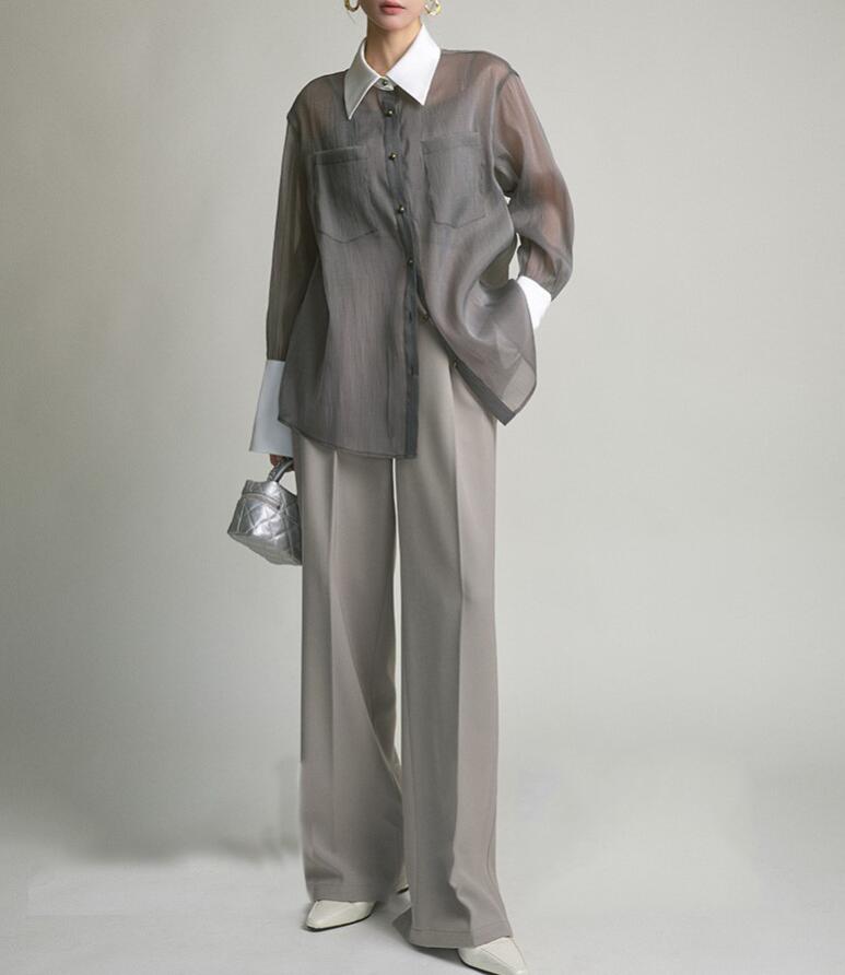セットアップ ブラウス キャミソール シアーシャツ UVカット ブラウス レディース UVパーカー 春 夏 接触冷感 薄手 透け感 長袖 冷房対策 2点セット ライトアウター 撥水 速乾 通気 長袖
