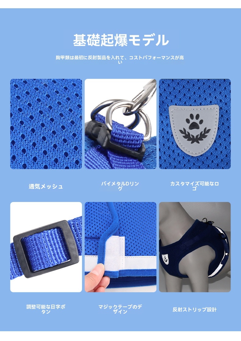 犬の鎖のベストのペット胸の馬具のテディのバイカーの反射通気性の犬の鎖屋外の犬の散歩の鎖 胴輪 ハーネス