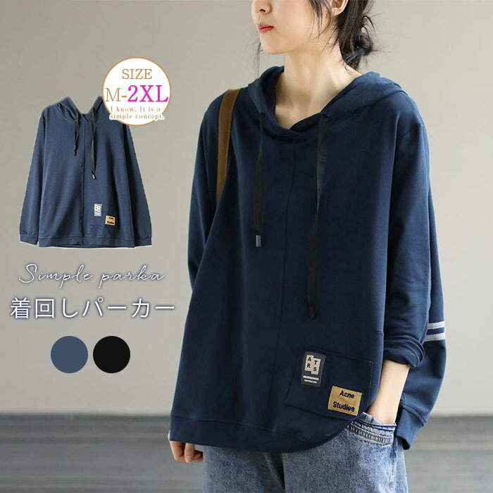 パーカー レディース 秋 長袖 トップス フード付き 大きいサイズ 異素材 切替 サイドスリット プルオーバー 無地 シンプル カジュアル 体型カバー ゆったり フーディー リラックス 大人可愛い ト