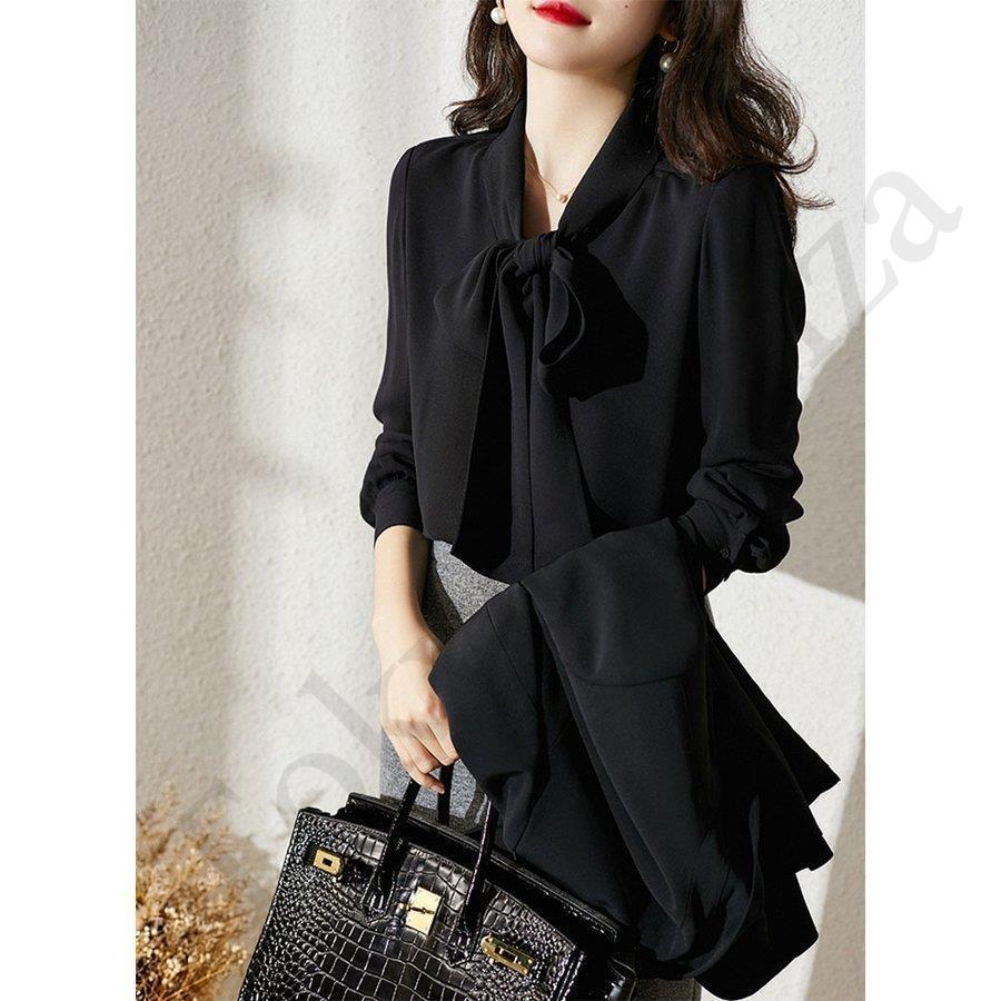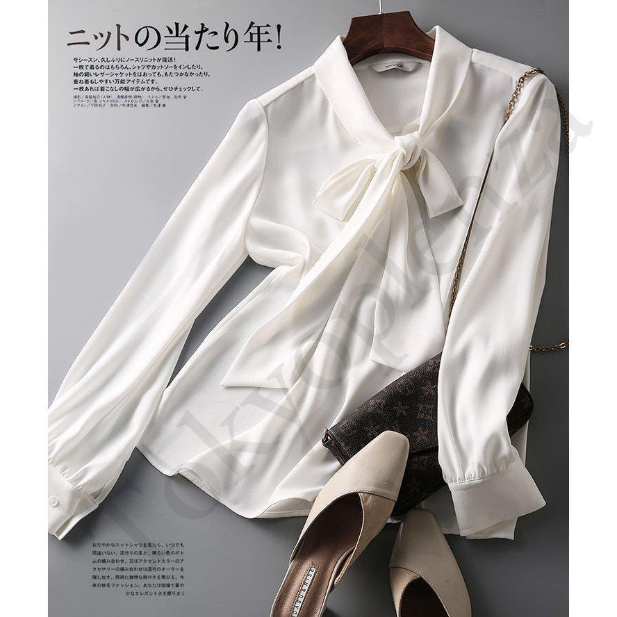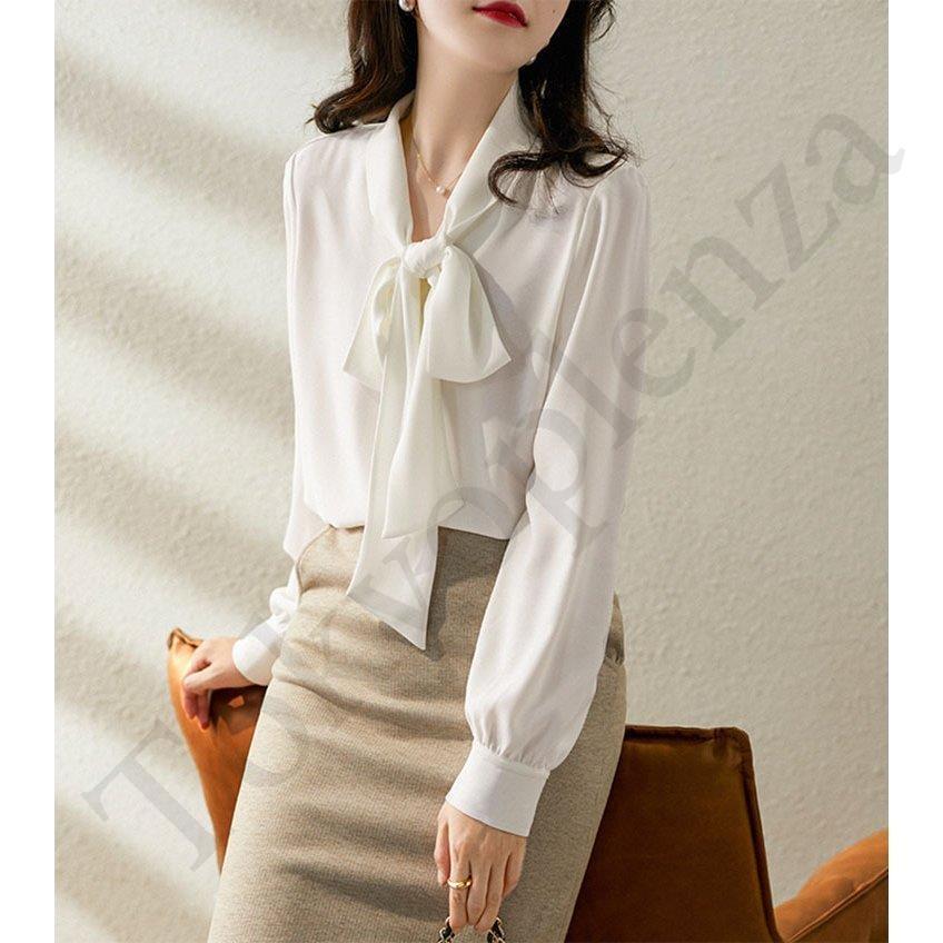 ブラウス レディース きれいめ 長袖 40代 春 秋 オシャレブラウス 白シフォンシャツ リボンネック 上品 大人 通勤 ゆったり シャツ 30代